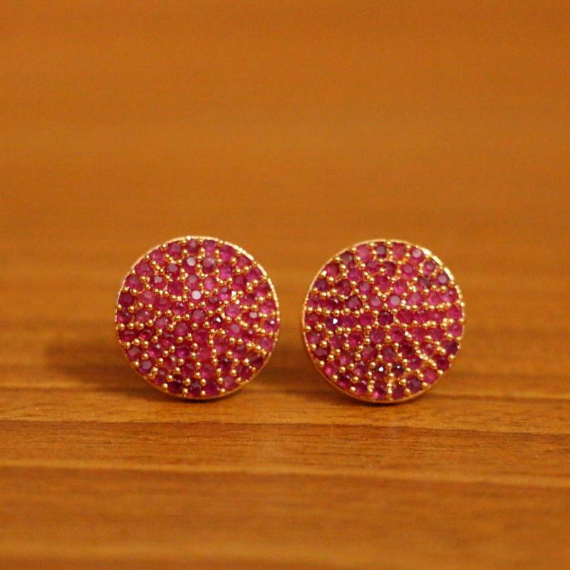 These Studs Are Handcrafted In Silver Alloy With Imitation Red Quartz & American Diamond Of Very Fine Quality. These Simple Round Pattern Pave Setting Earrings Are Plated With Fine Quality Gold Rhodium. The Earrings Are Very Attractive And Light In Weight.