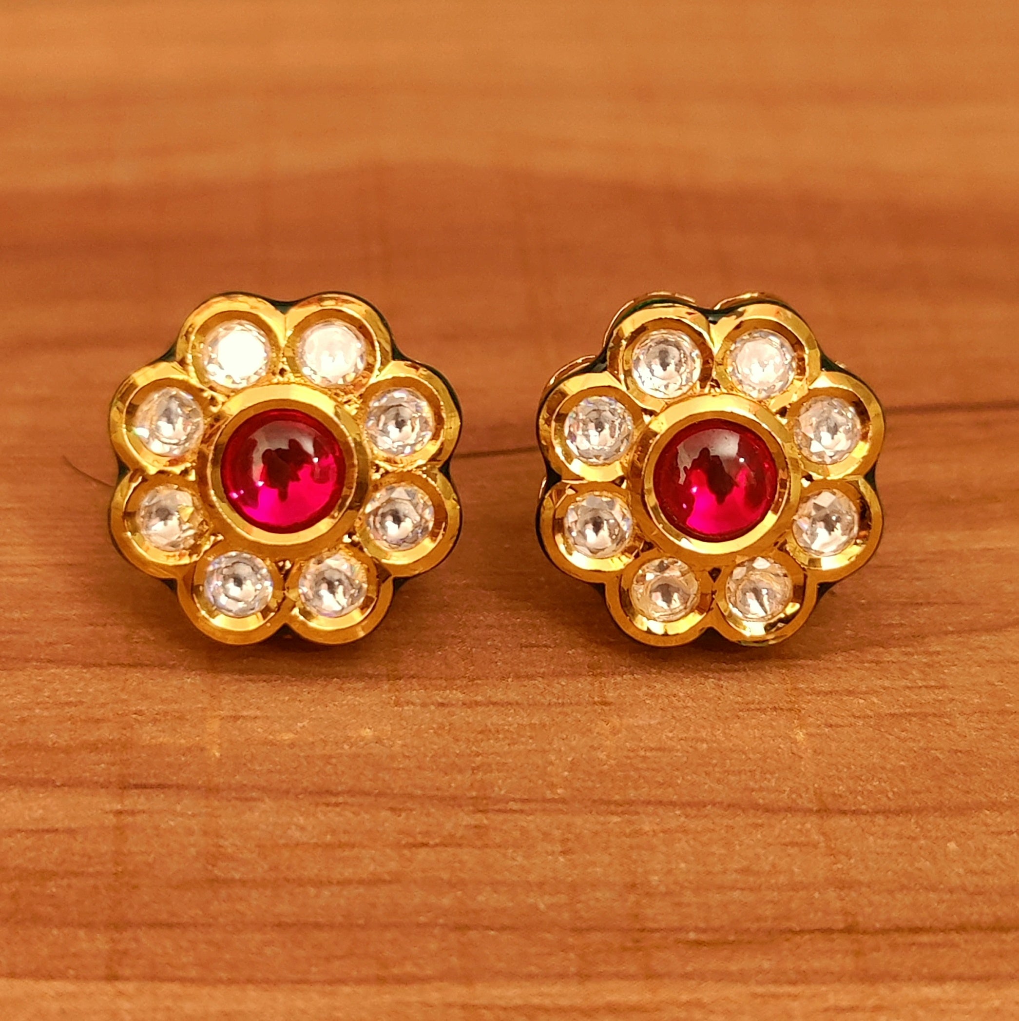 RUBY FLOWER PATTERN KUNDAN MEENAKARI STUDS