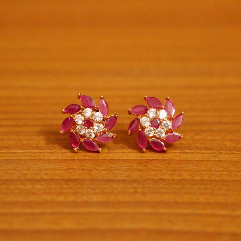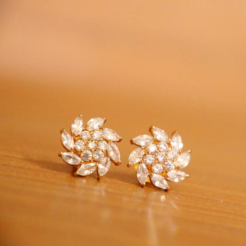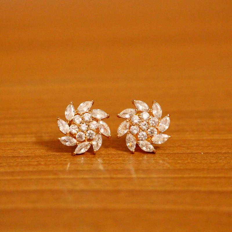 These Studs Are Handcrafted In Silver Alloy With Imitation American Diamond Of Very Fine Quality. These Simple Flower Pattern Earrings Are Plated With Fine Quality Gold Rhodium. The Earrings Are Very Attractive And Light In Weight.