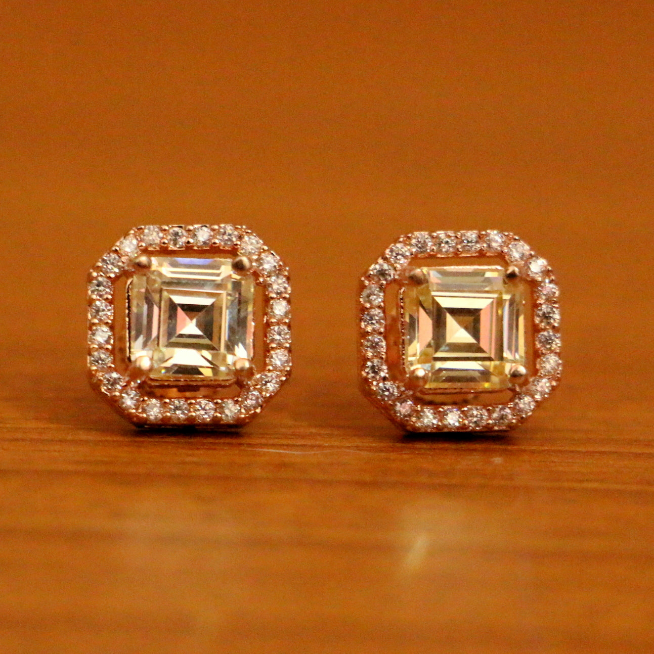 These diamond look studs are handcrafted in silver alloy with imitation sapphire colour quartz & cz stones of very fine quality. These earrings are plated in rose gold rhodium plating which gives the design a real jewelry look .