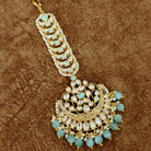 Kundan Chand Maang Tikka with Mint Green Beads – Bridal Polki Crescent Head Jewelry