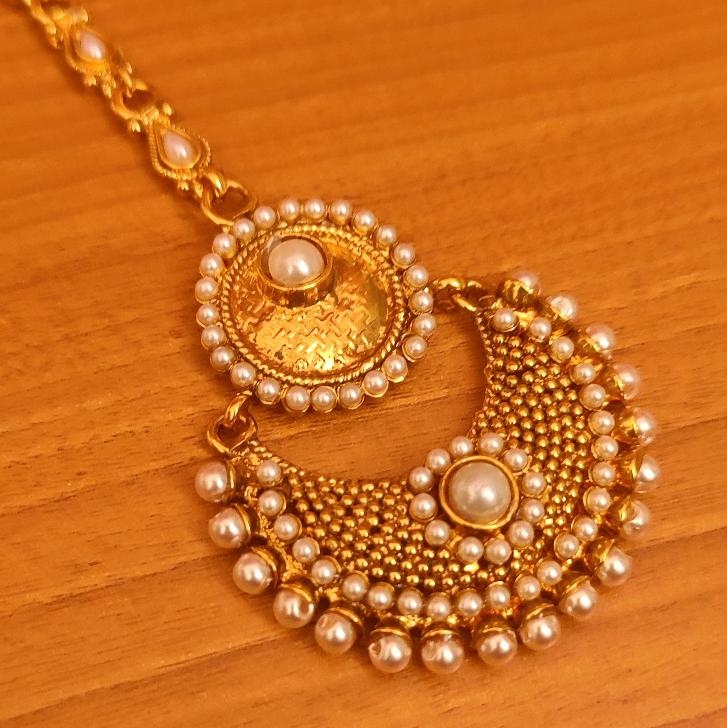 PEARL GOLD PLATED WEDDING MANG TIKKA