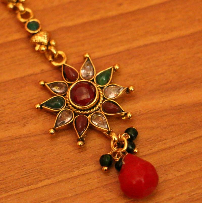 Matt Gold Look Multicolour Polki Bridal Maang Tikka