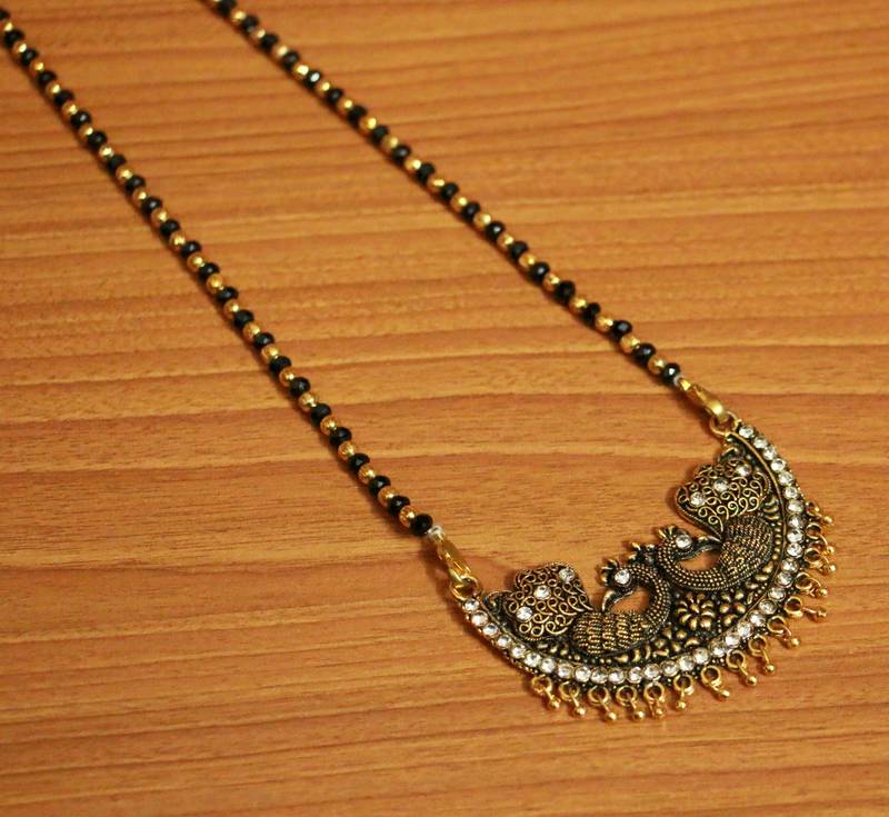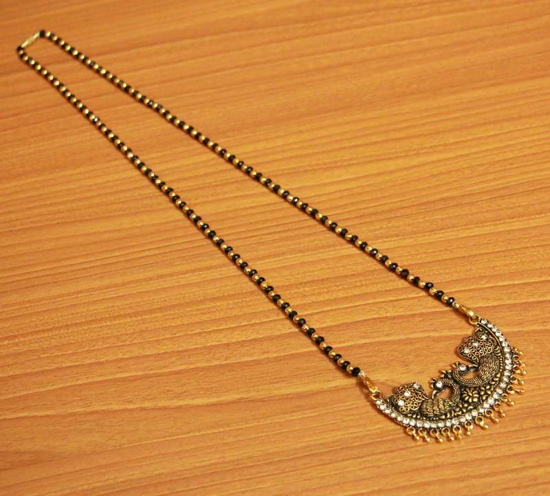 This mangalsutra is handcrafted in brass alloy with fine polki work of fine quality , the mangalsutra is plated with 18kt nickle free gold plating which gives it a real look .