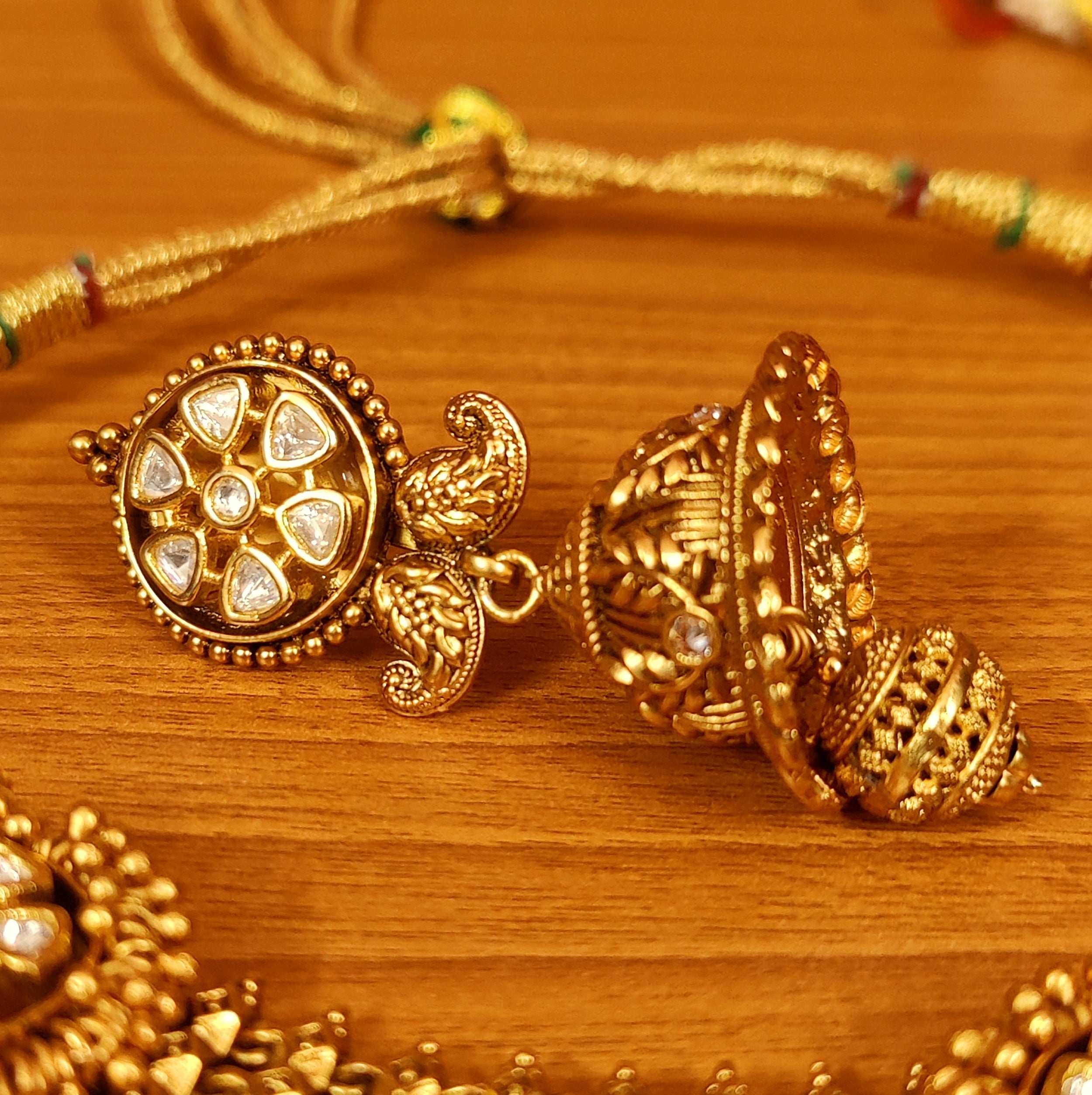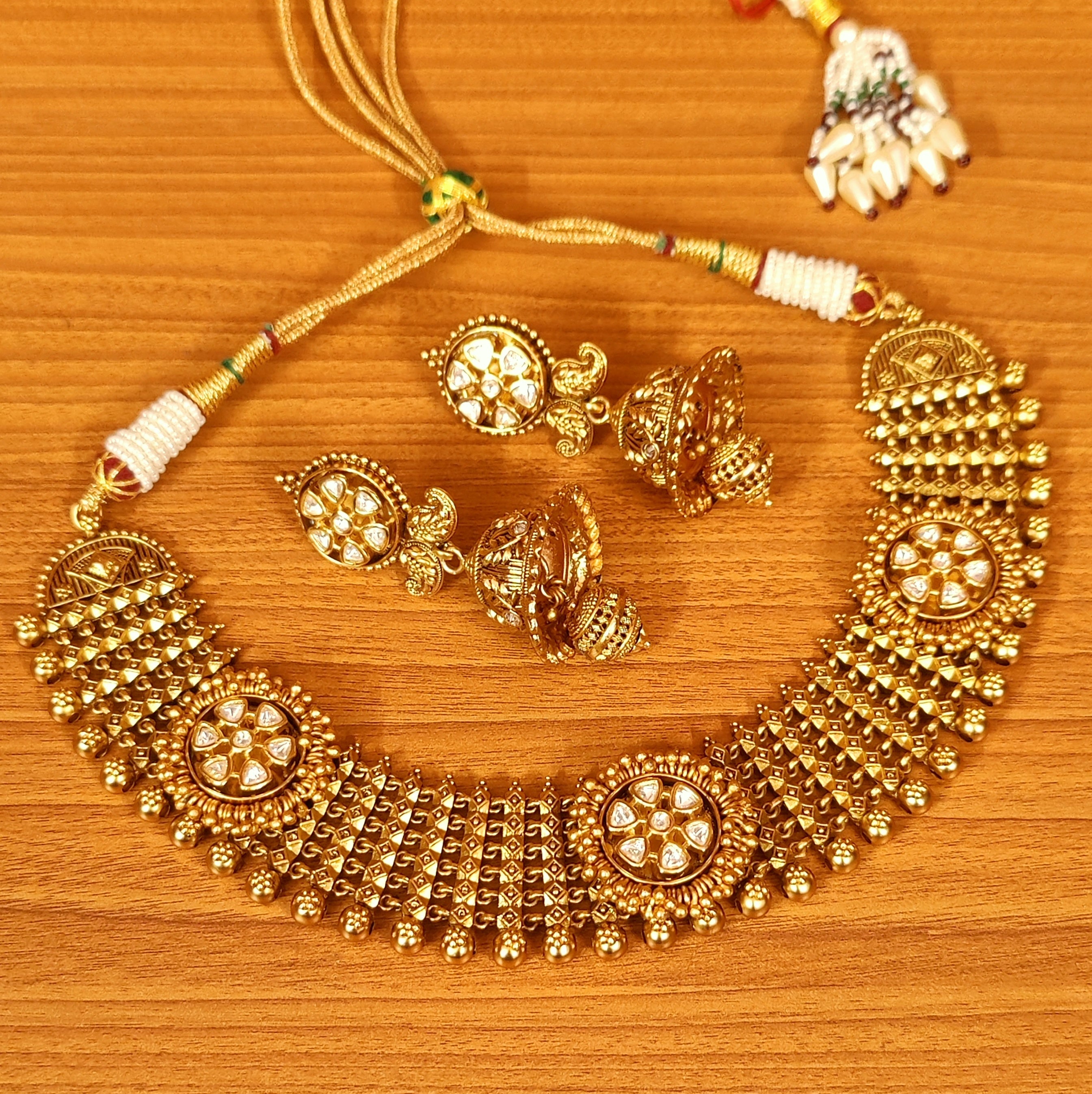 TEMPLE LOOK ANTIQUE GOLD PLATED CHOKER NECKLACE SET