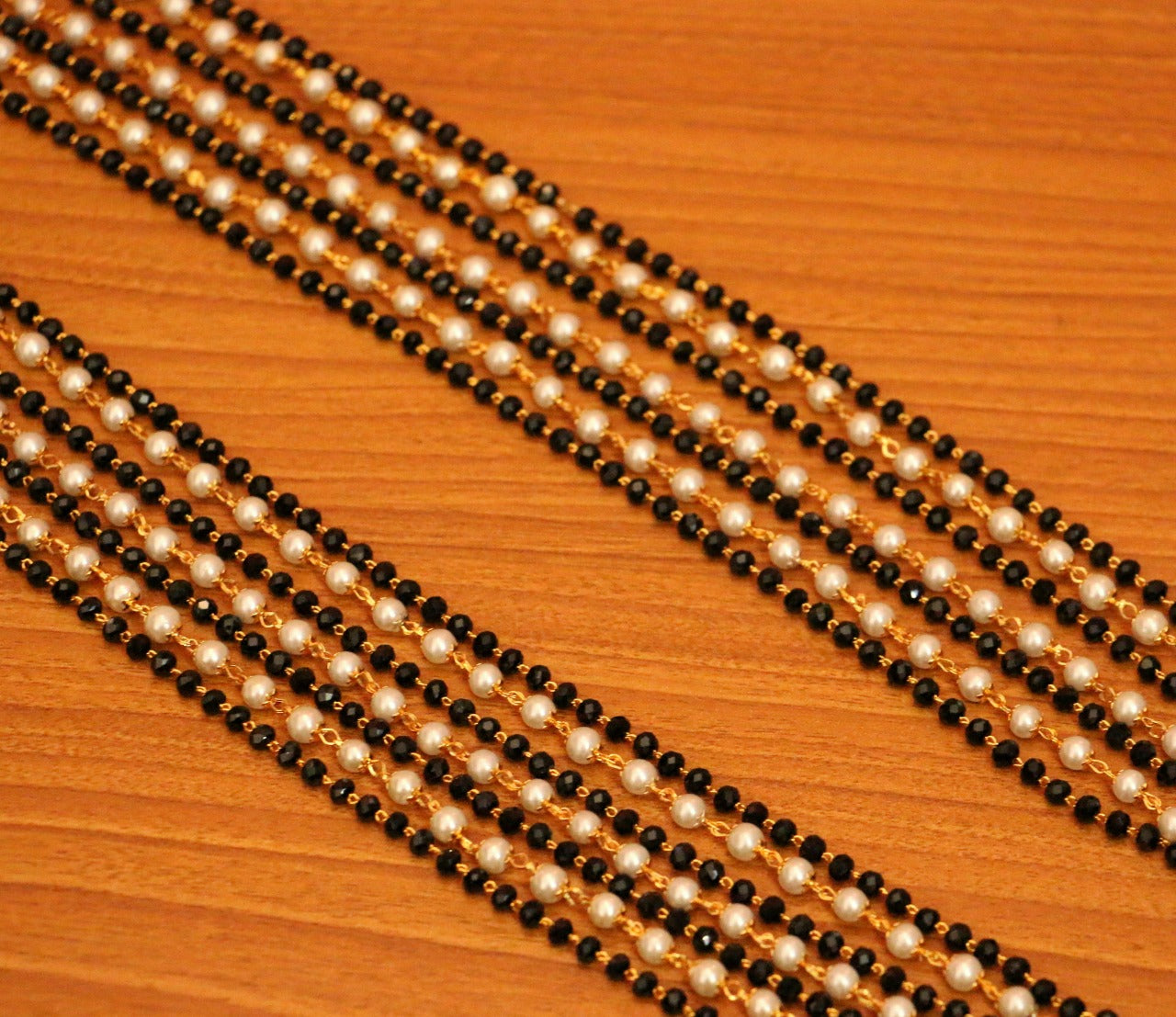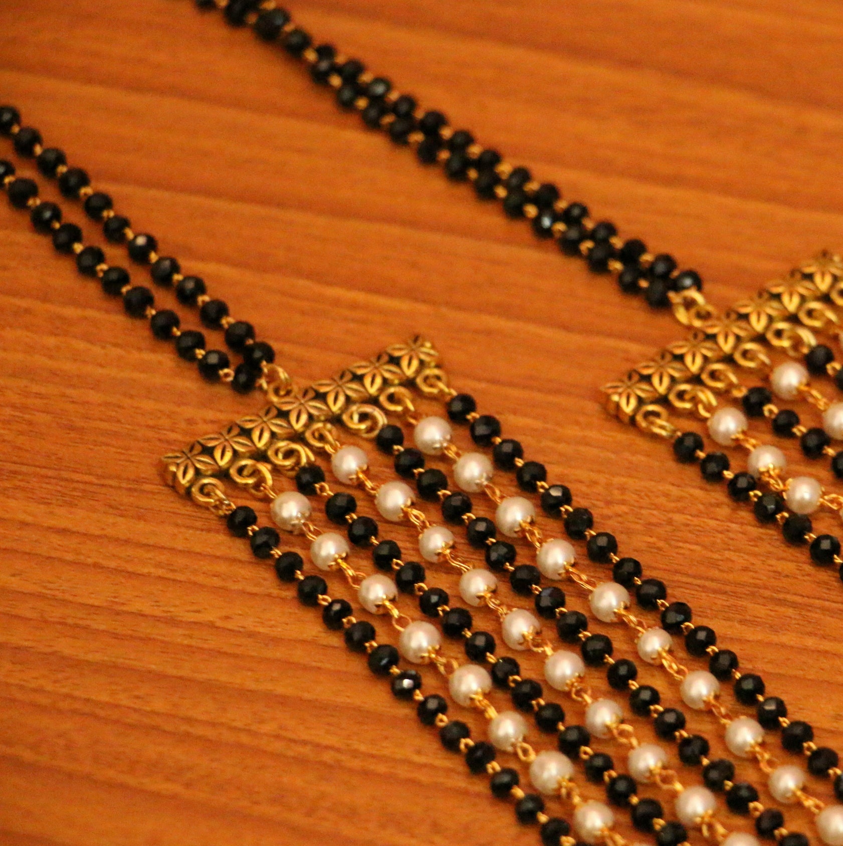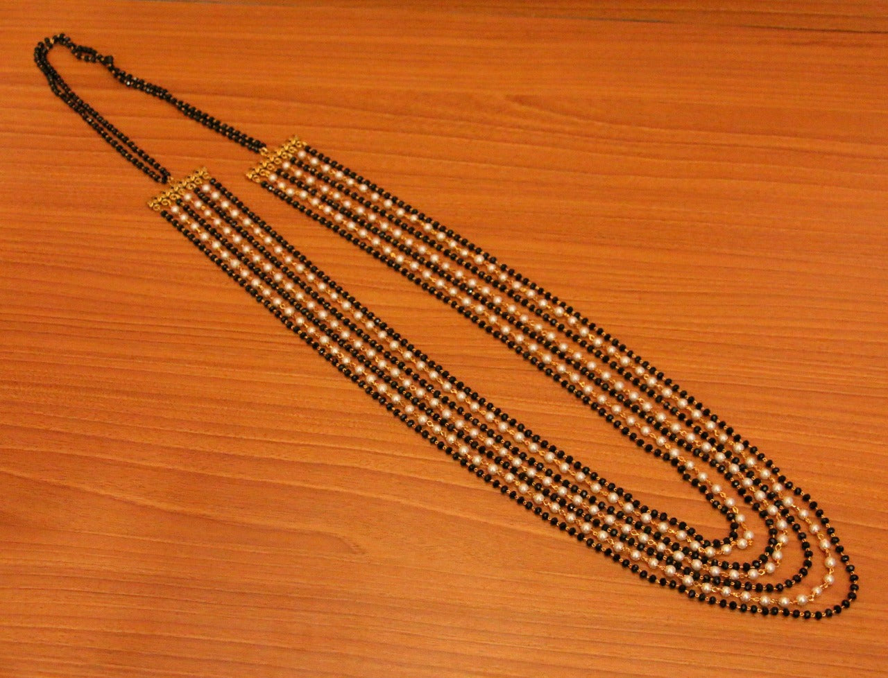 This pearl and black bead necklace is handcrafted in with imitation black crystal beads & pearls of very fine quality , the necklace is very light in weight and plated with 18kt gold rhodium to give it a real gold look.