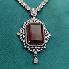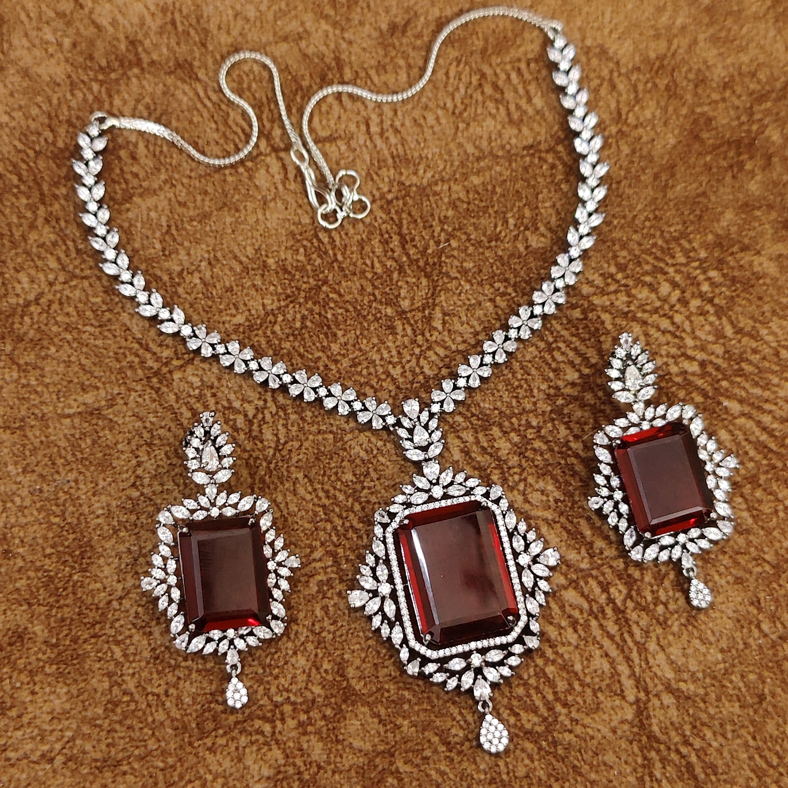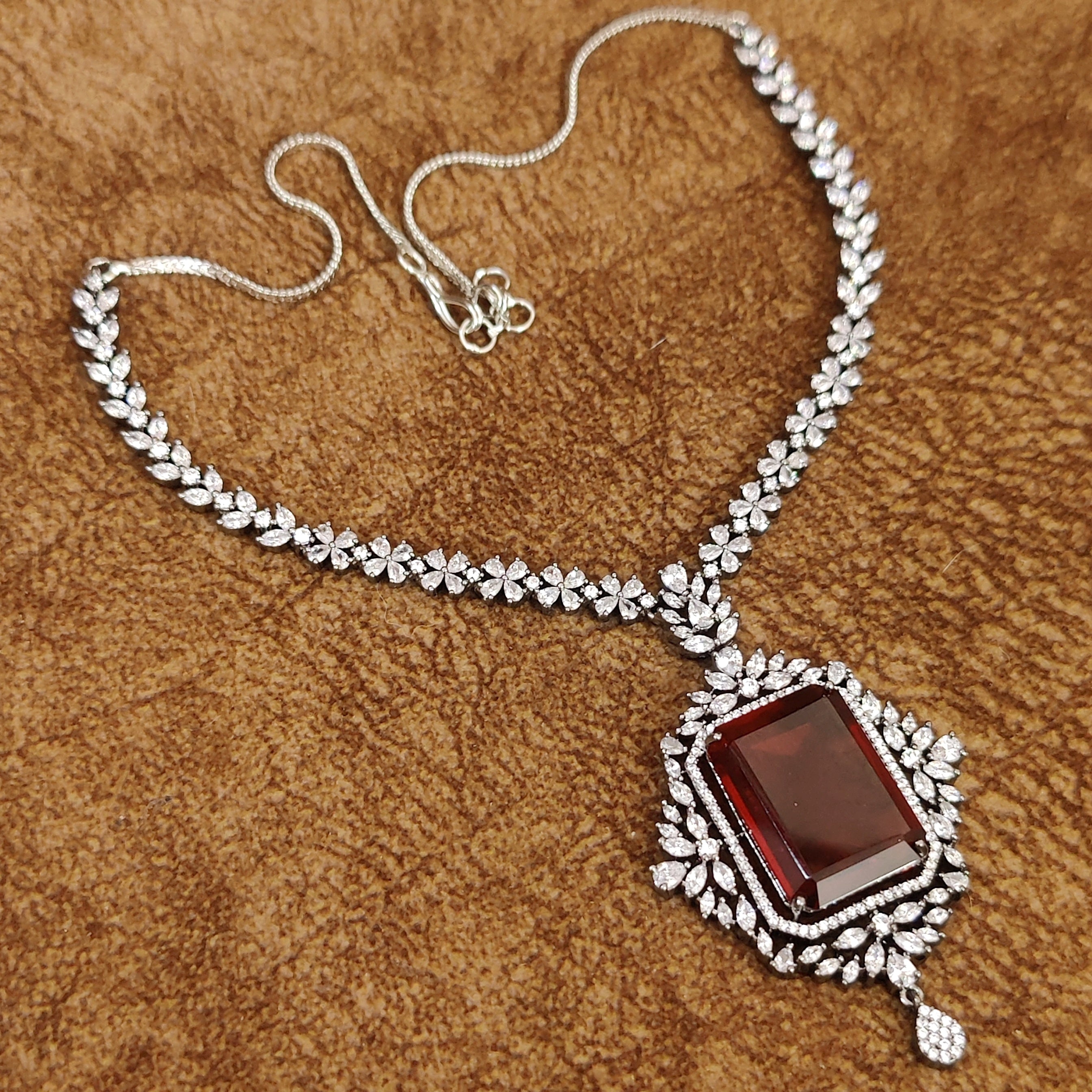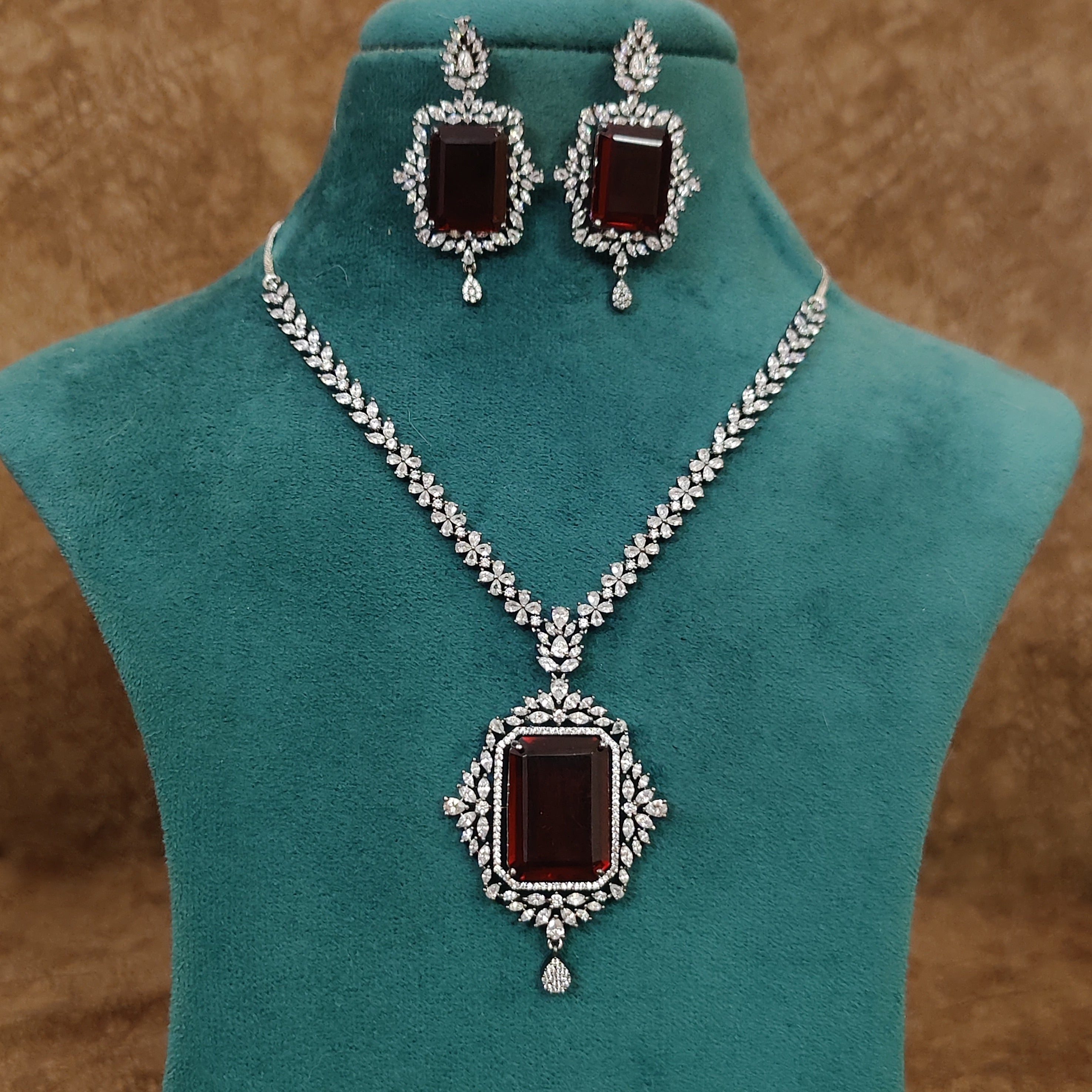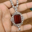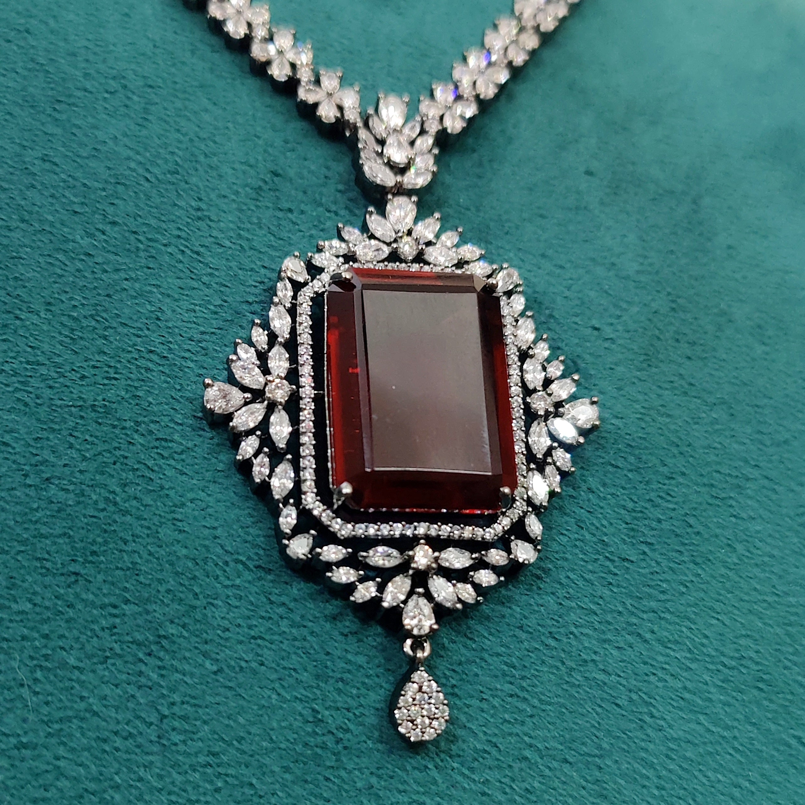 BLACK SILVER DIAMOND LOOK DARK RUBY NECKLACE SET