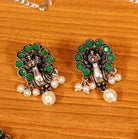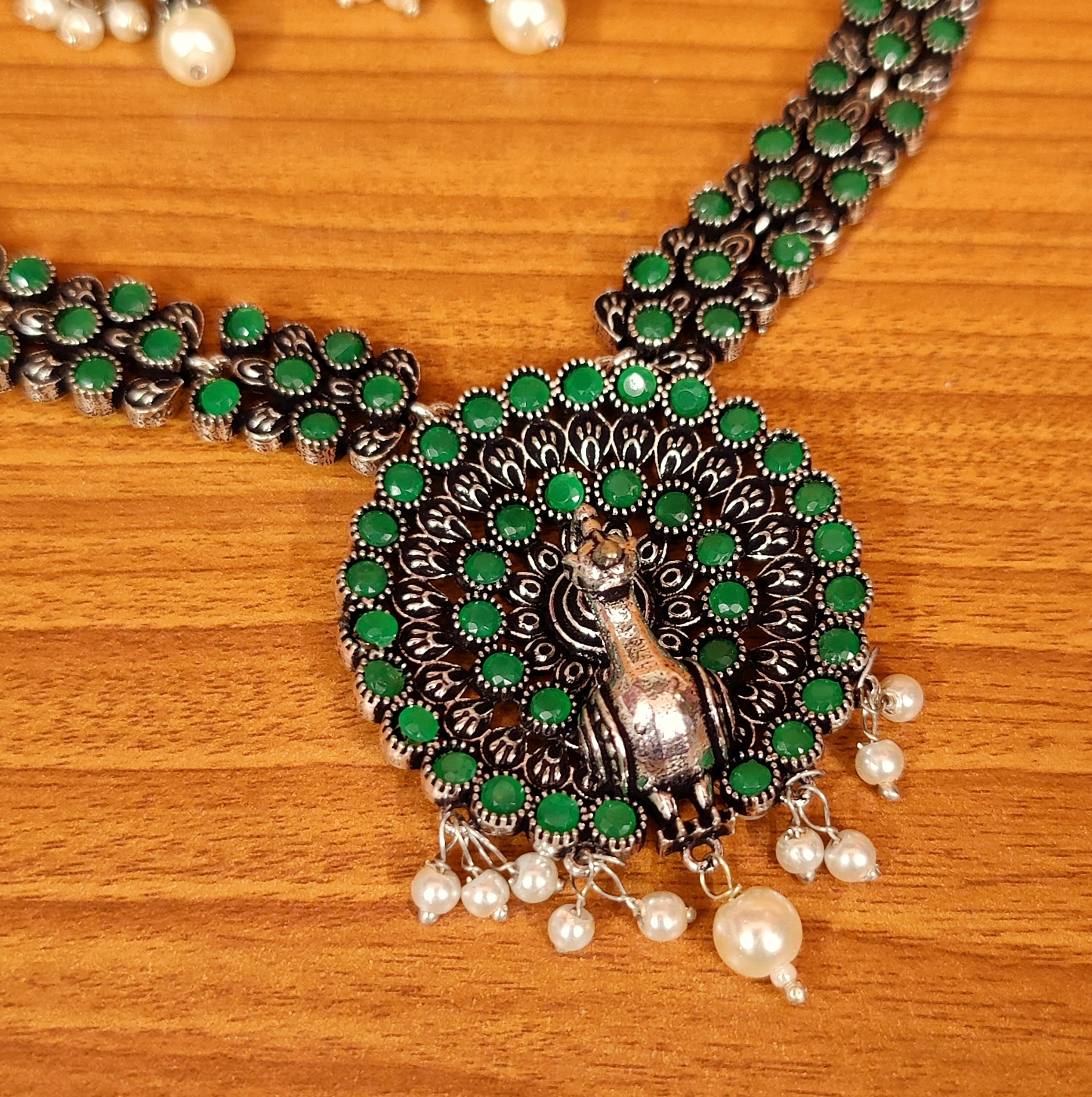EMERALD COLOUR PEACOCK OXIDISED SILVER NECKLACE SET