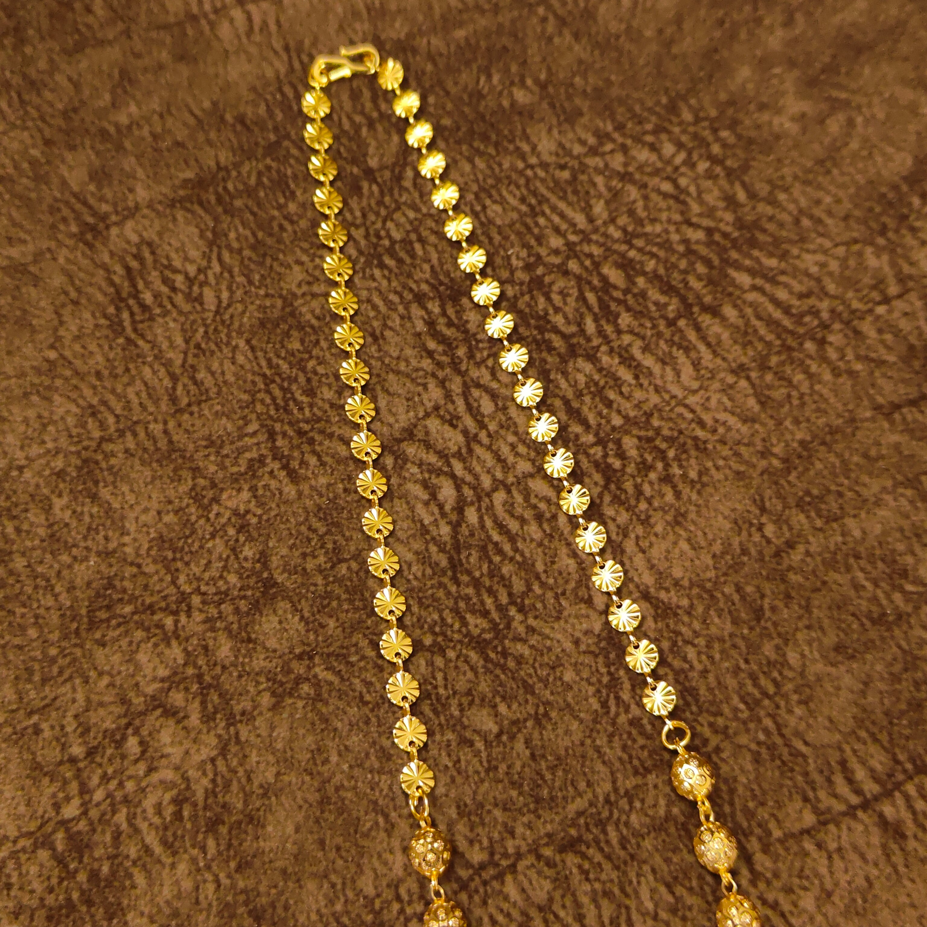 Add a charming touch to your style with this Golden Beaded Floral Chain Necklace, featuring beautifully carved floral motifs and premium gold-toned beaded detailing. A perfect addition to your fashion jewelry collection, this necklace elevates any look effortlessly — from festive outfits to daily ethnic wear. Perfect choice for gifting too — birthdays, Karwa Chauth, Teej, and festive celebrations.