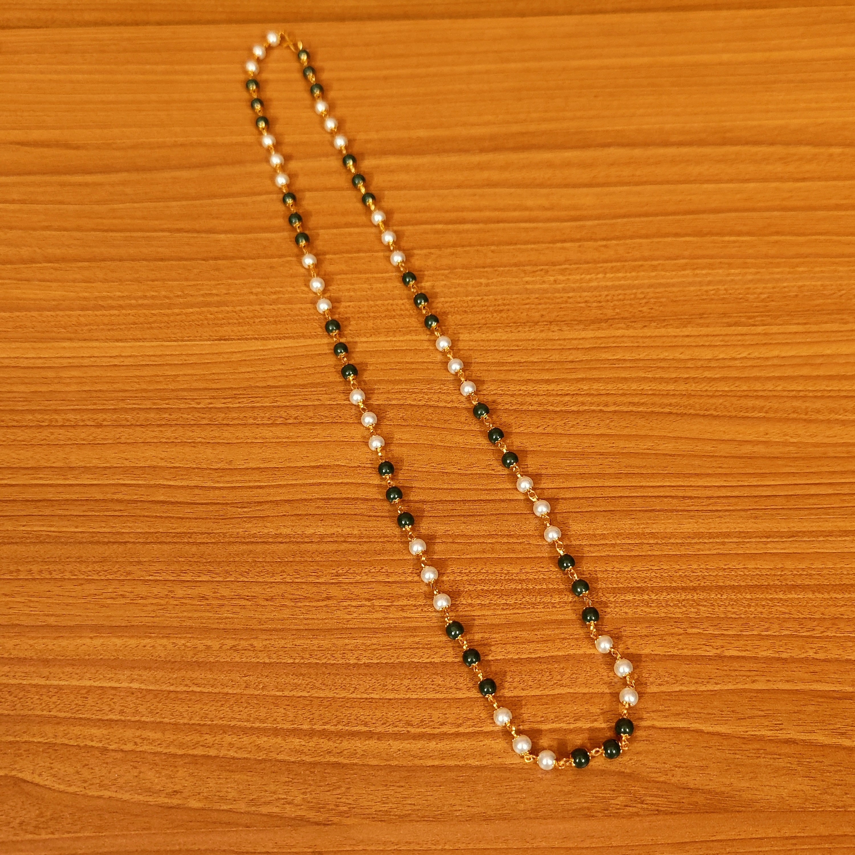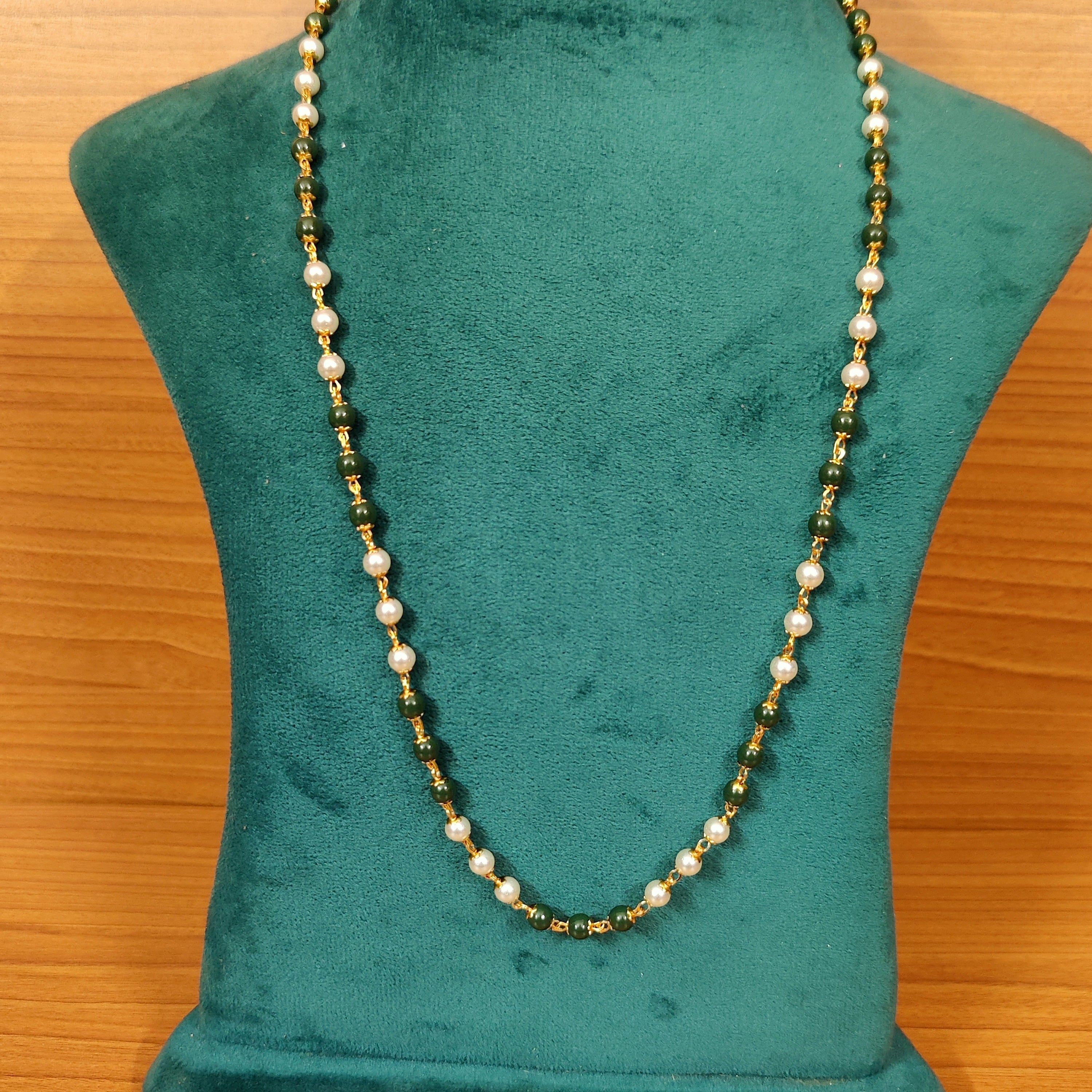 GREEN BEADS & PEARL SINGLE LINE NECKLACE