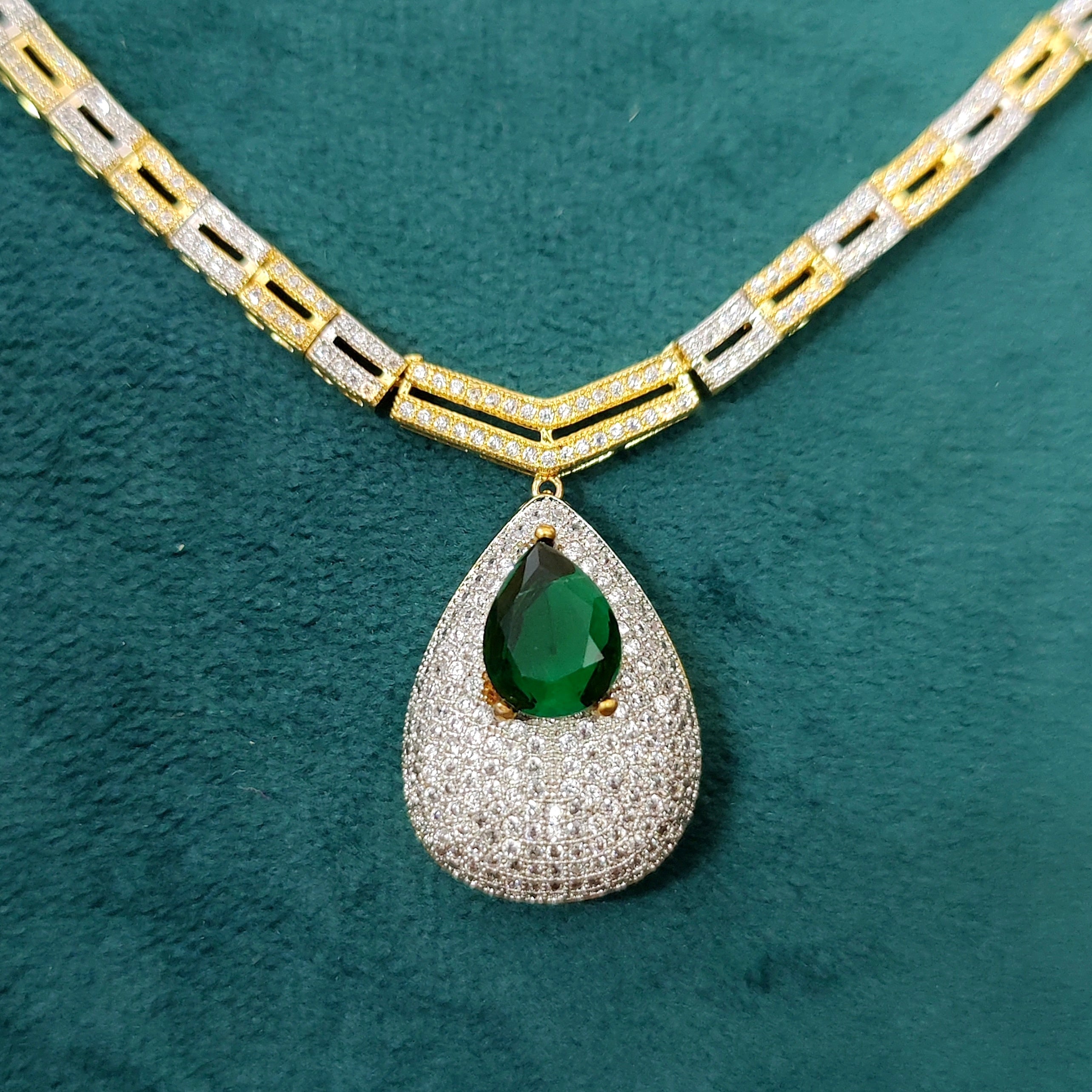 Turn heads with the Black Silver Diamond Look Dark Ruby Necklace Set, a captivating fusion of elegance and mystery. This stunning set features deep ruby stones set in a sleek black silver finish, creating a luxurious contrast. The diamond-like detailing adds a sparkling touch, making it perfect for evening events and special occasions. Elevate your style with this statement piece that speaks of timeless sophistication.