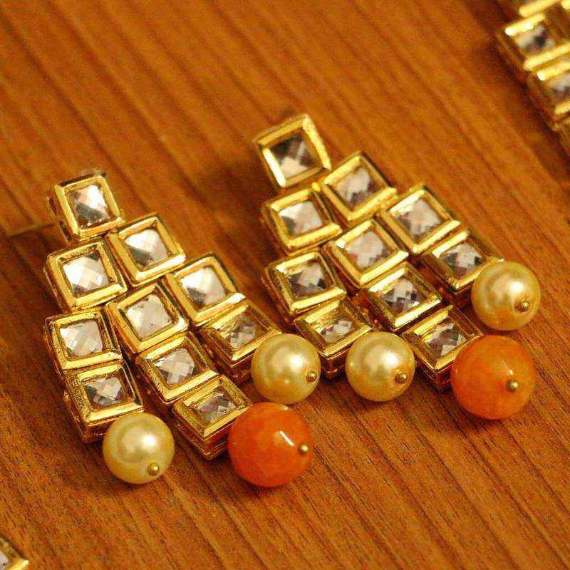 Kundan Meenakari Ethnic Orange and Pearl Bead Necklace Set
