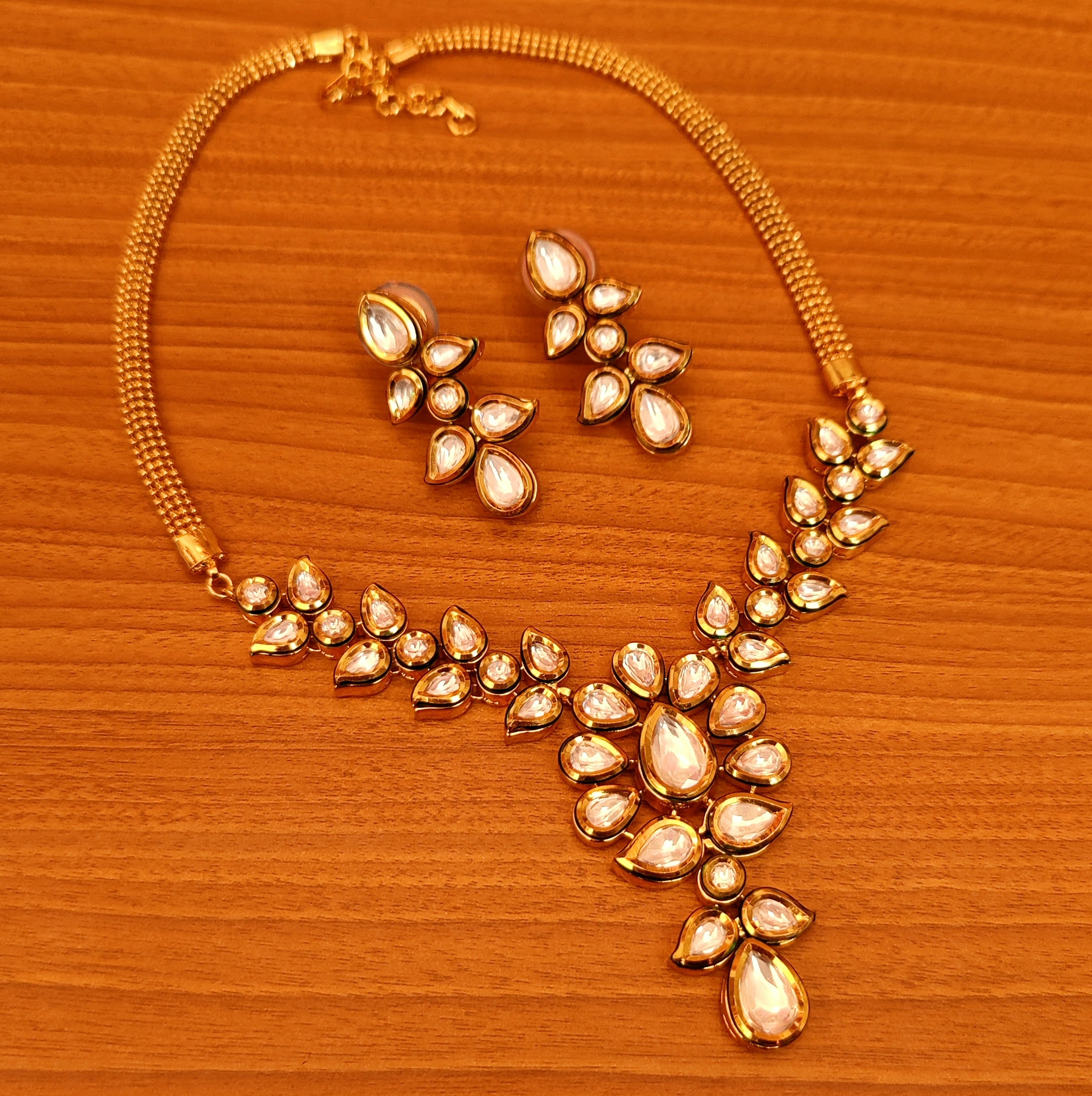PAISLEY SHAPED KUNDAN MEENAKARI NECKLACE SET