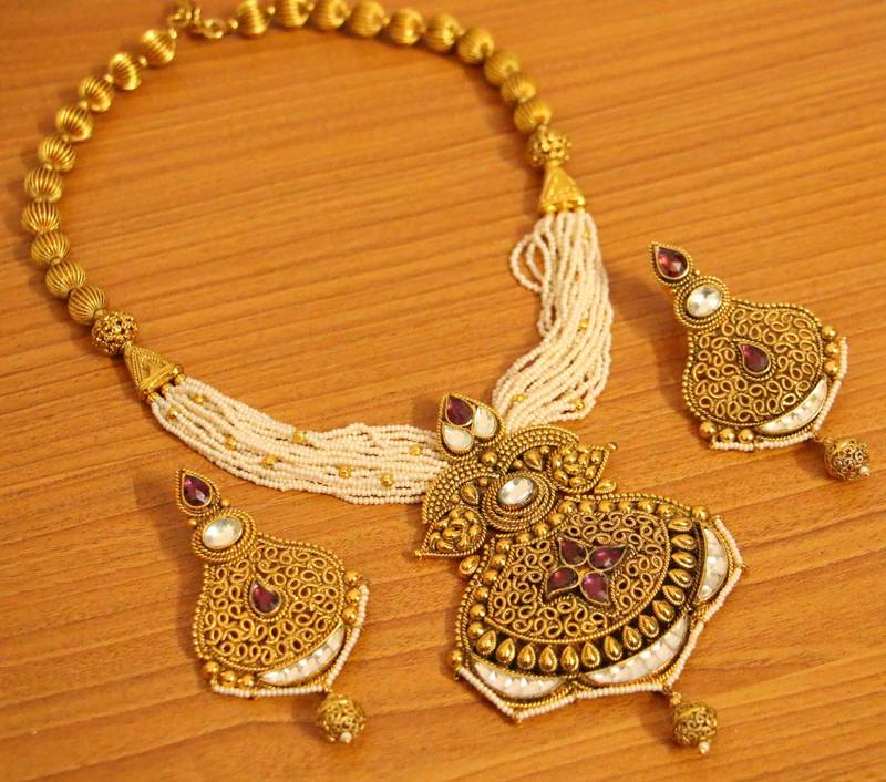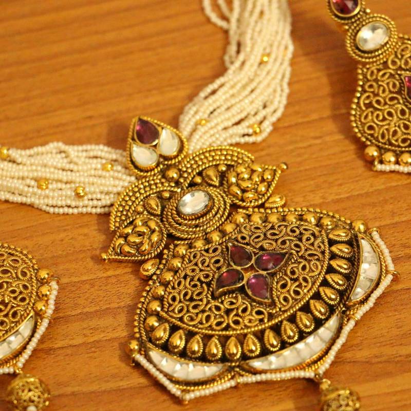 Kundan Polki Gold Look Antique Fine Necklace Set