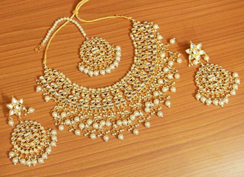 This Kundan necklace is handcrafted in brass alloy with fine kundan stone and imitation pearls , the necklace set is plated with 18kt gold plating to give it a real kundan look.