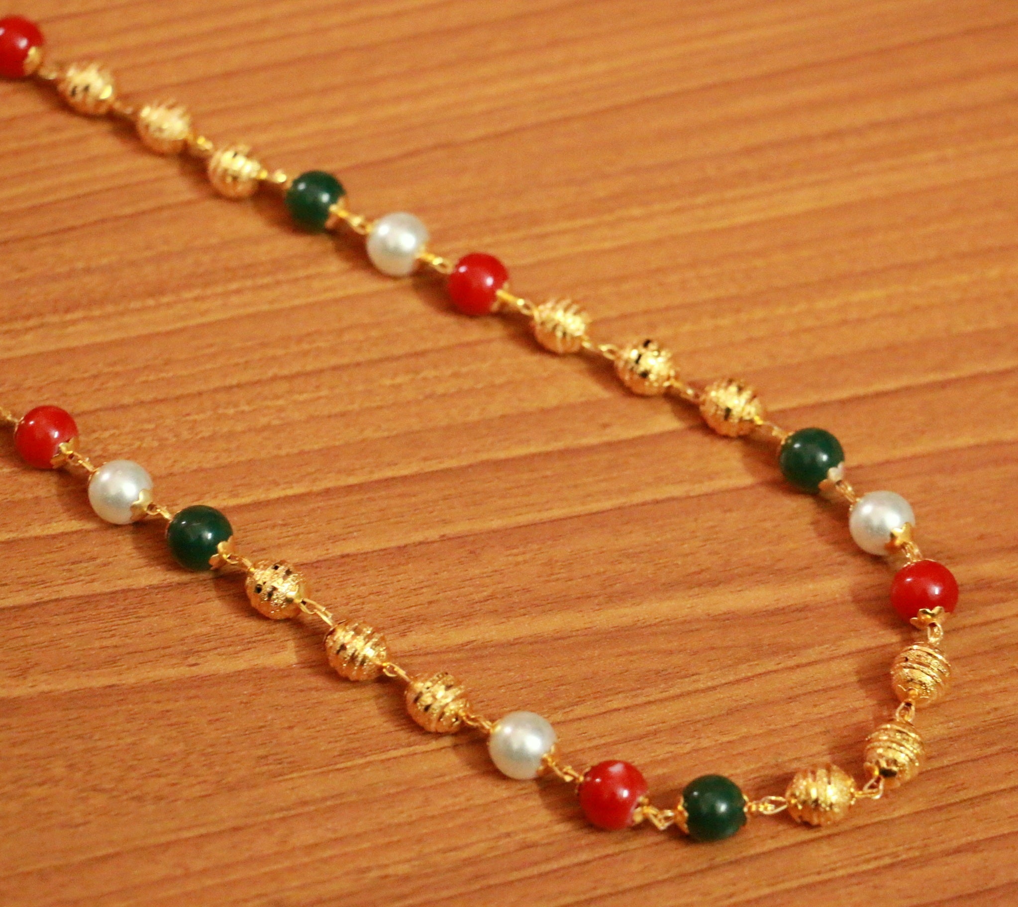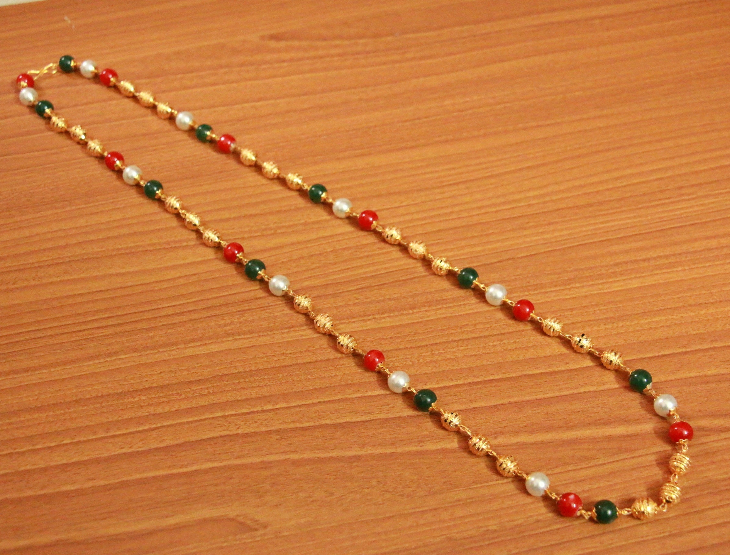 This beautiful necklace is handcrafted in beaded alloy with imitation multi beads work of very fine quality . The necklace is very intricate and very light in weight and is plated in 18kt gold plating as done on the real gold jewellery.