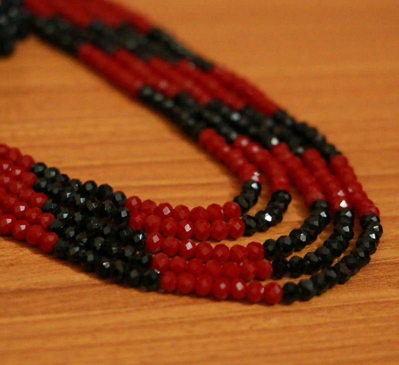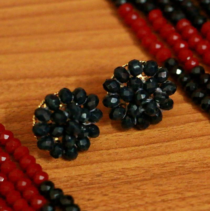 This Necklace set is handcrafted in crystal red and black beads of fine quality this multi layered necklace set is very light in weight and comes with a pair of studs.