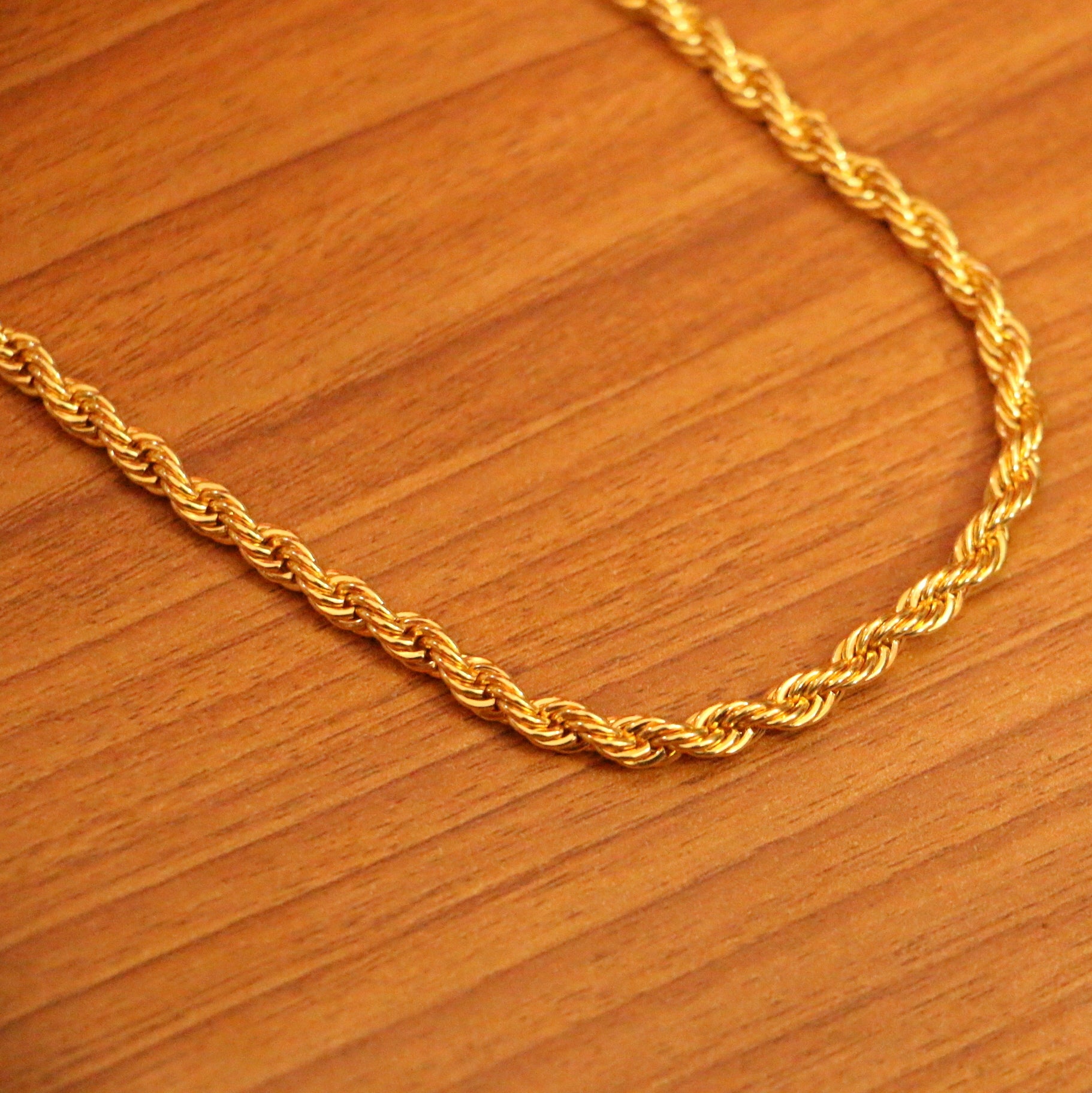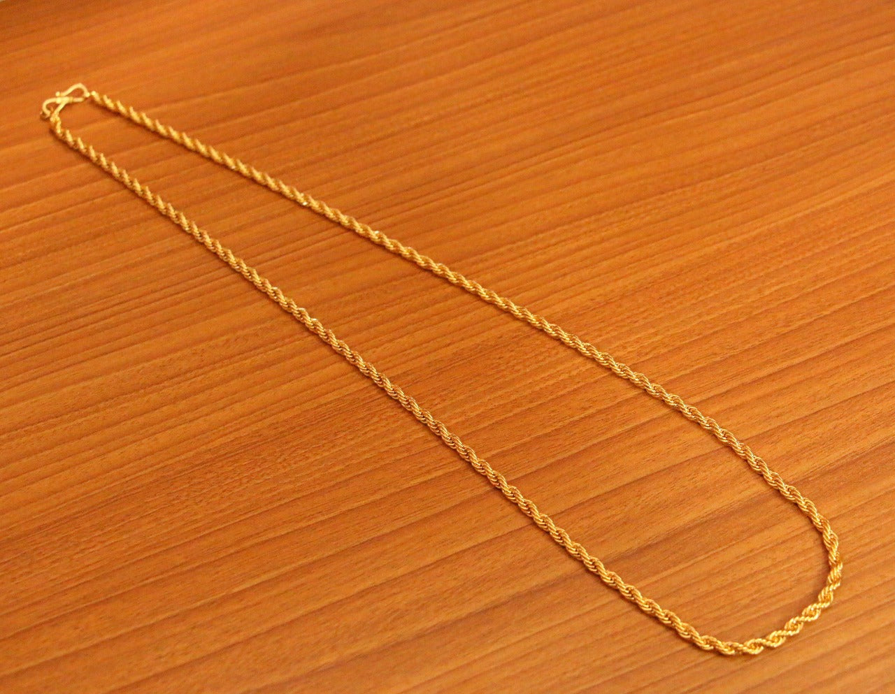 This necklace is handcrafted in copper alloy with gold rope pattern , the necklace is very light in weight and plated with 18kt gold rhodium to give it a real gold look.