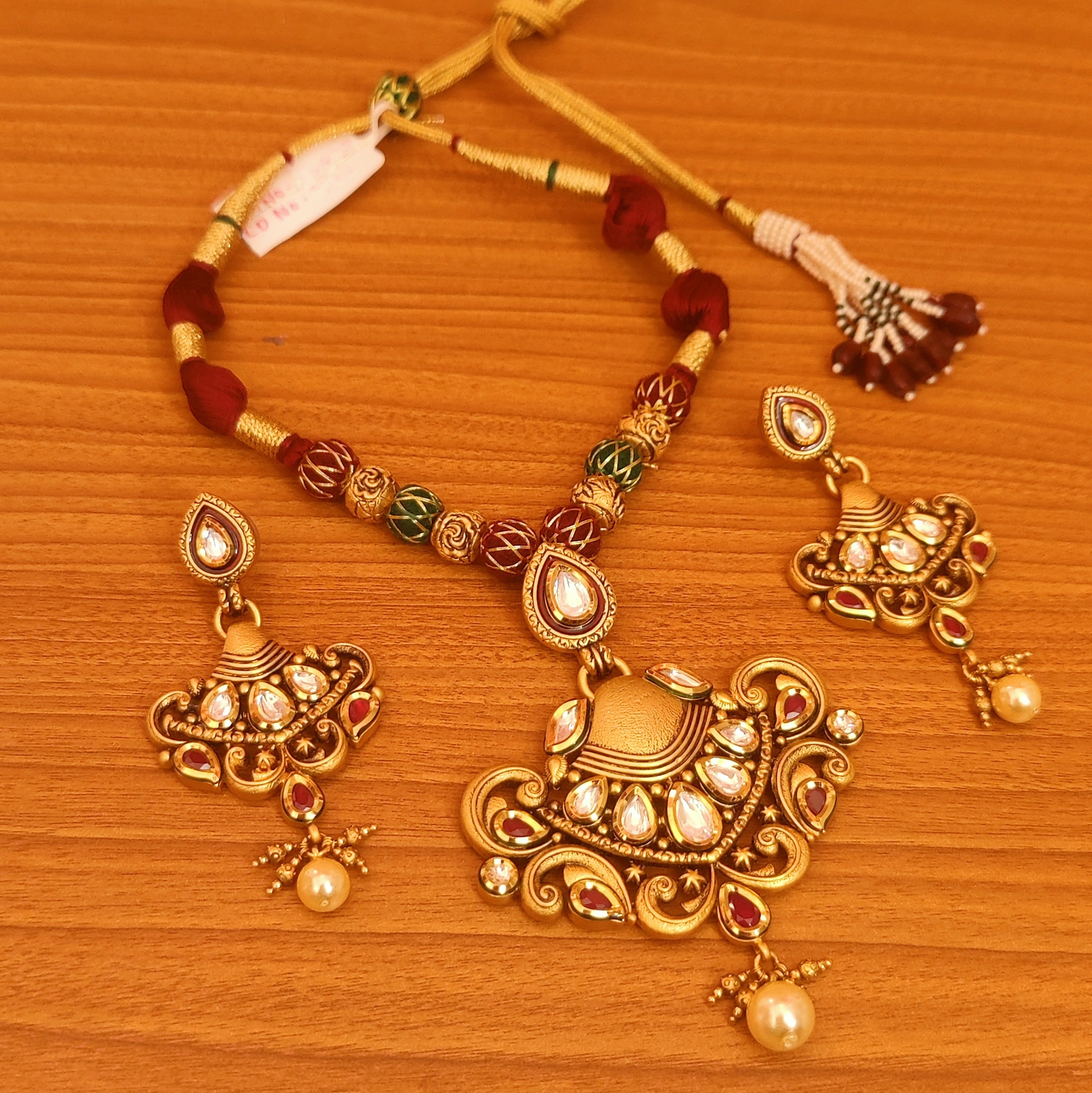 ROYAL ANTIQUE LOOK HANDCRAFTED RUBY NECKLACE SET
