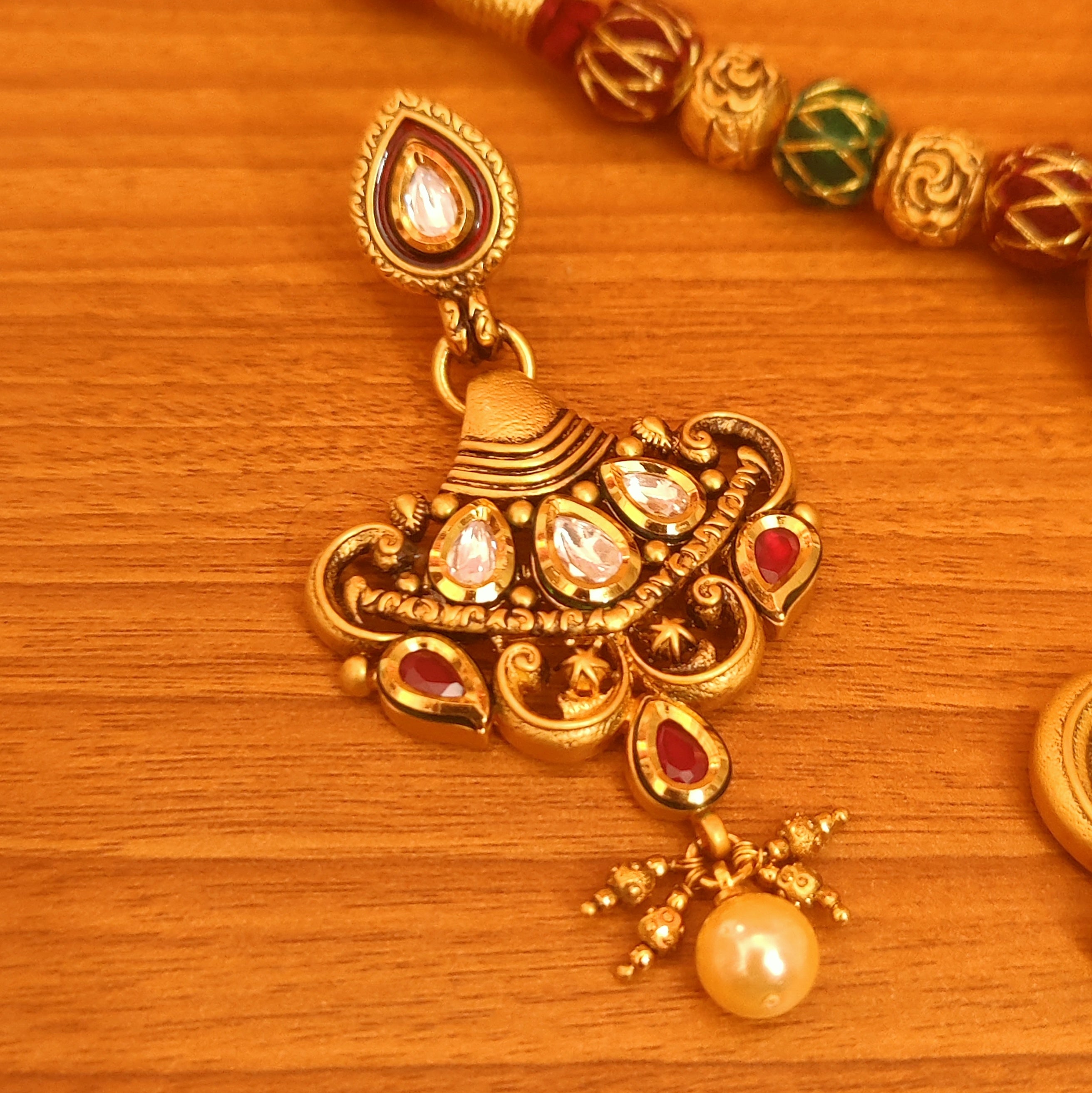 - Material : Alloy, Kundan, Pearls, Antique Gold
