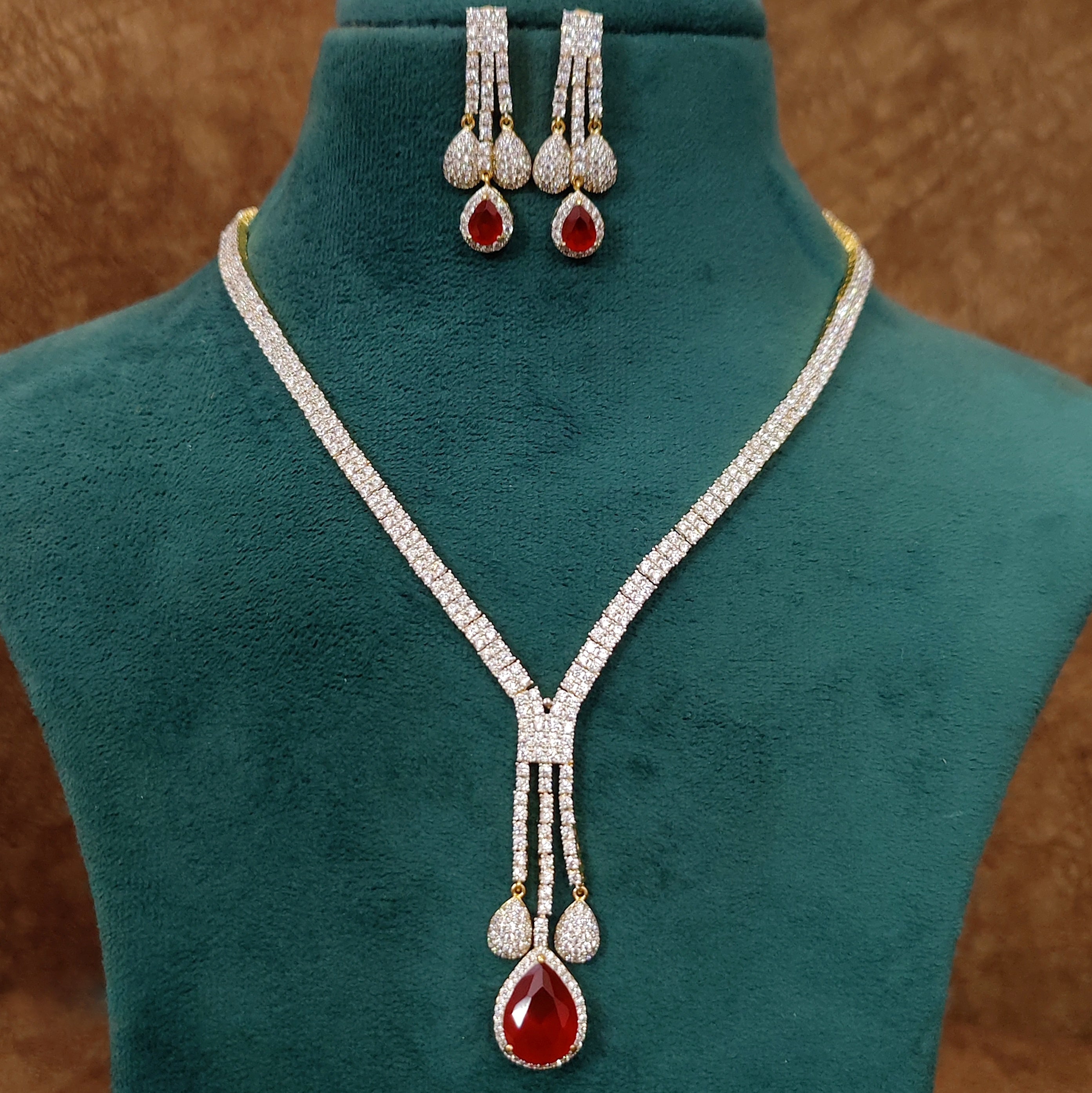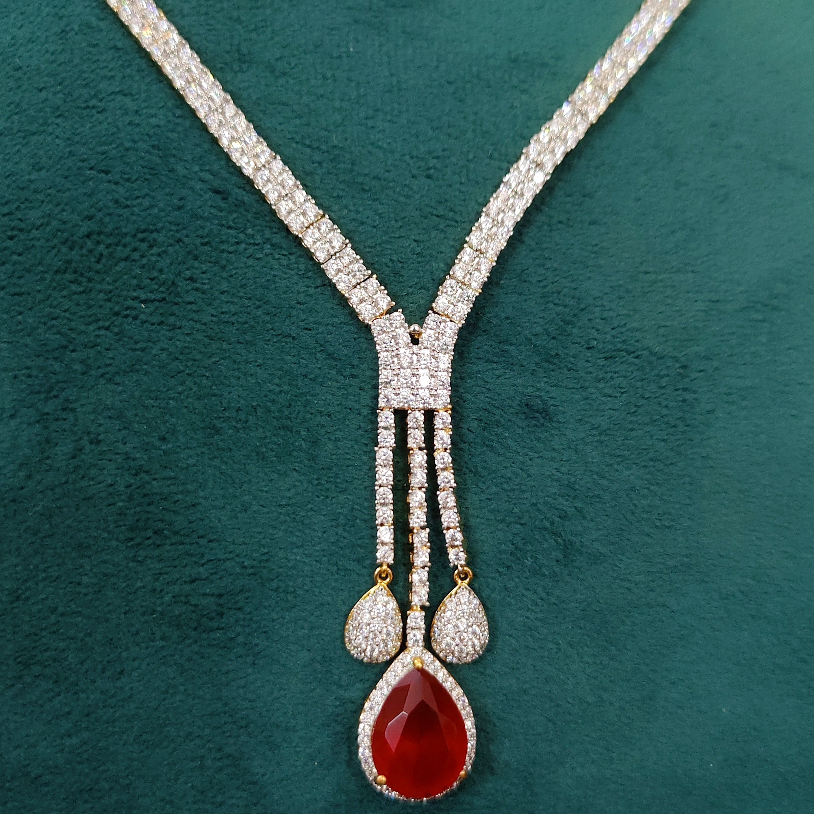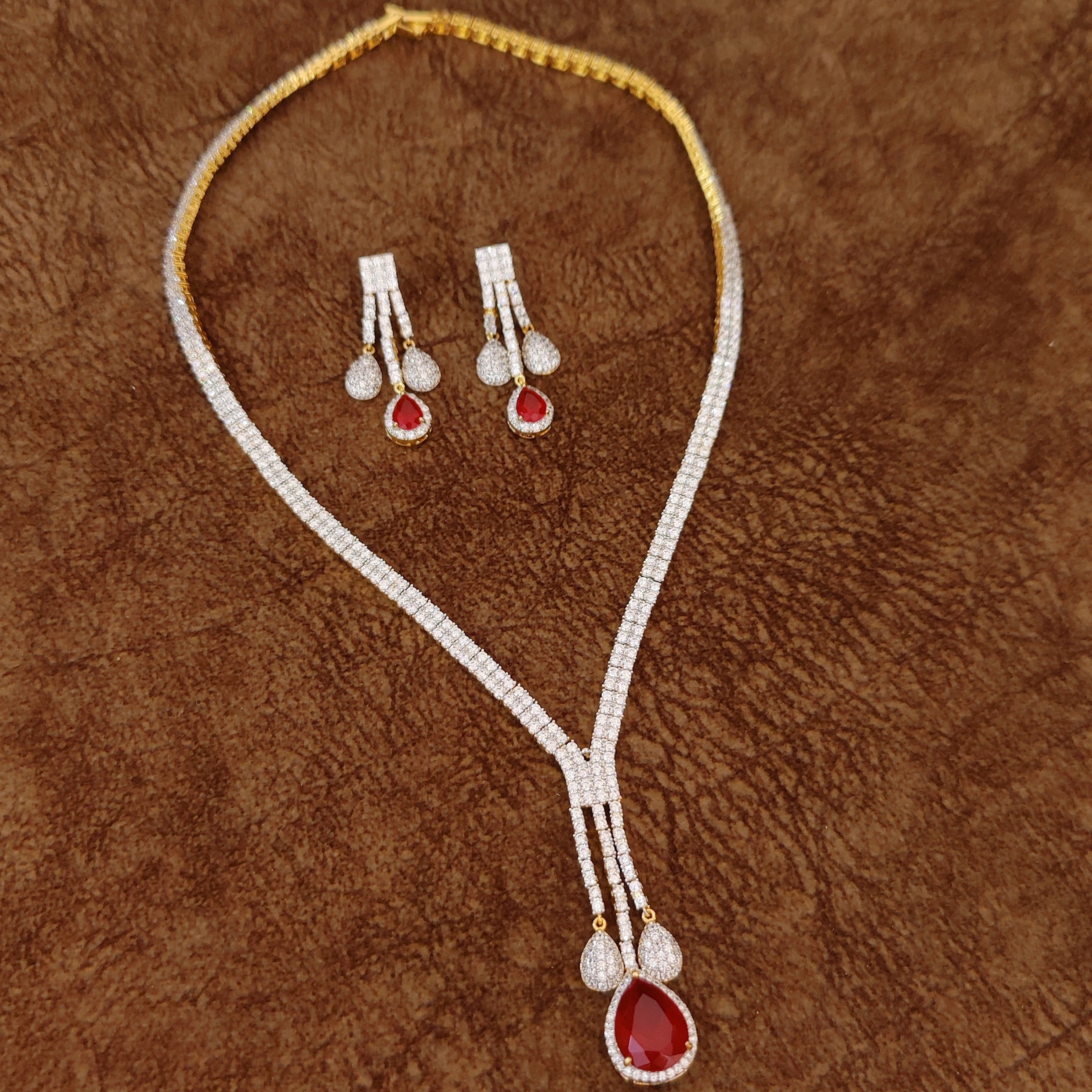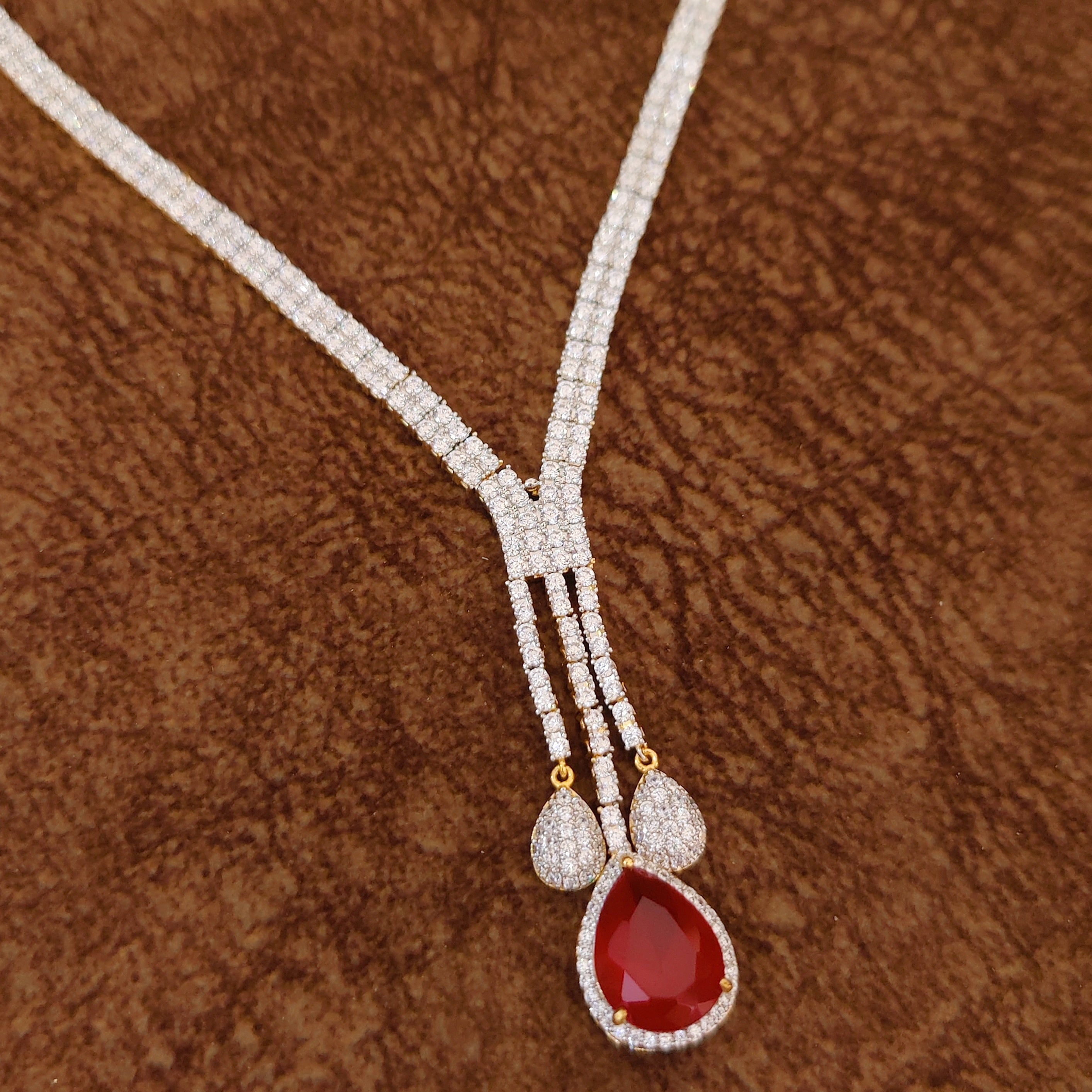 Turn heads with the Black Silver Diamond Look Dark Ruby Necklace Set, a captivating fusion of elegance and mystery. This stunning set features deep ruby stones set in a sleek black silver finish, creating a luxurious contrast. The diamond-like detailing adds a sparkling touch, making it perfect for evening events and special occasions. Elevate your style with this statement piece that speaks of timeless sophistication.
