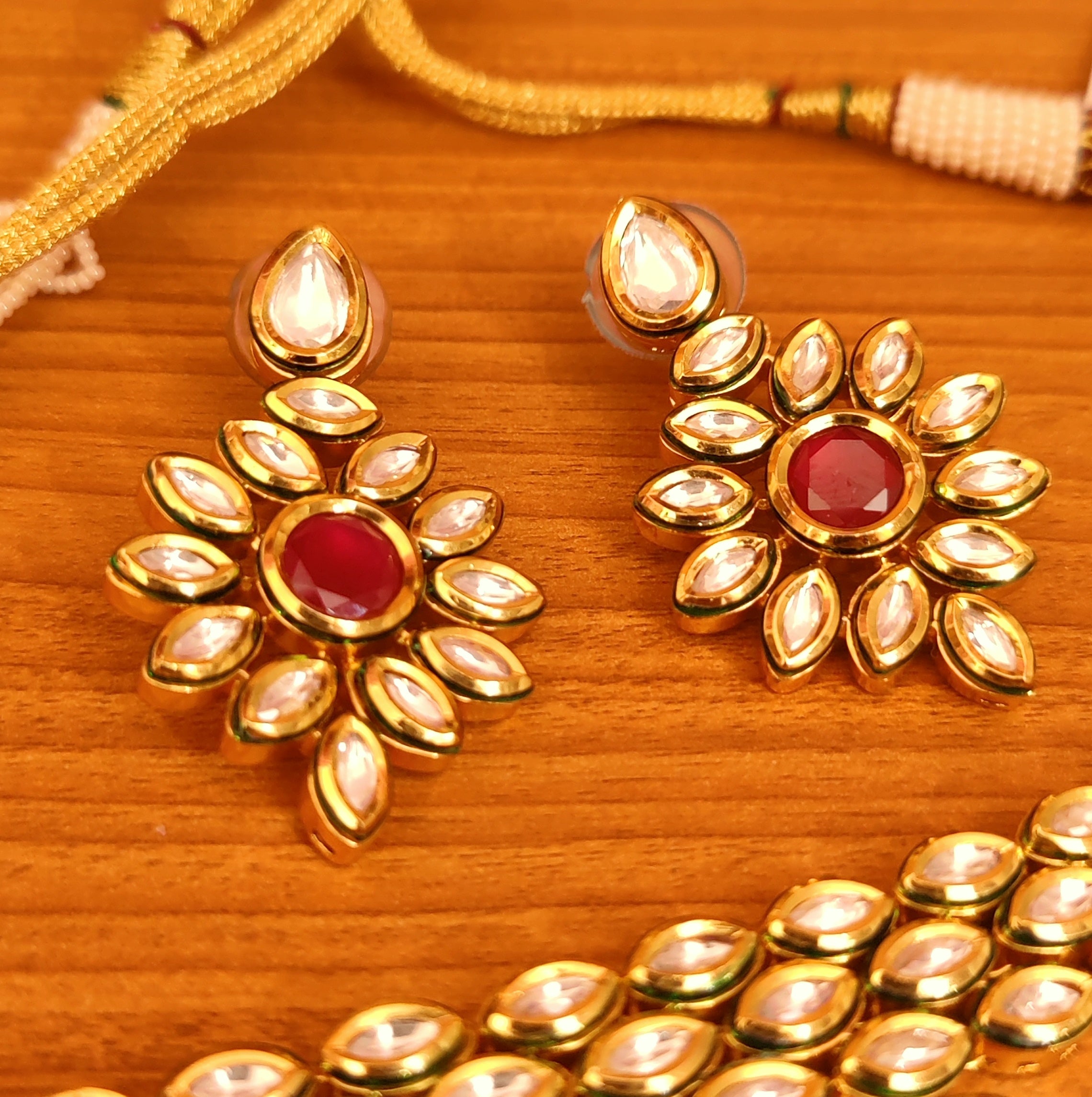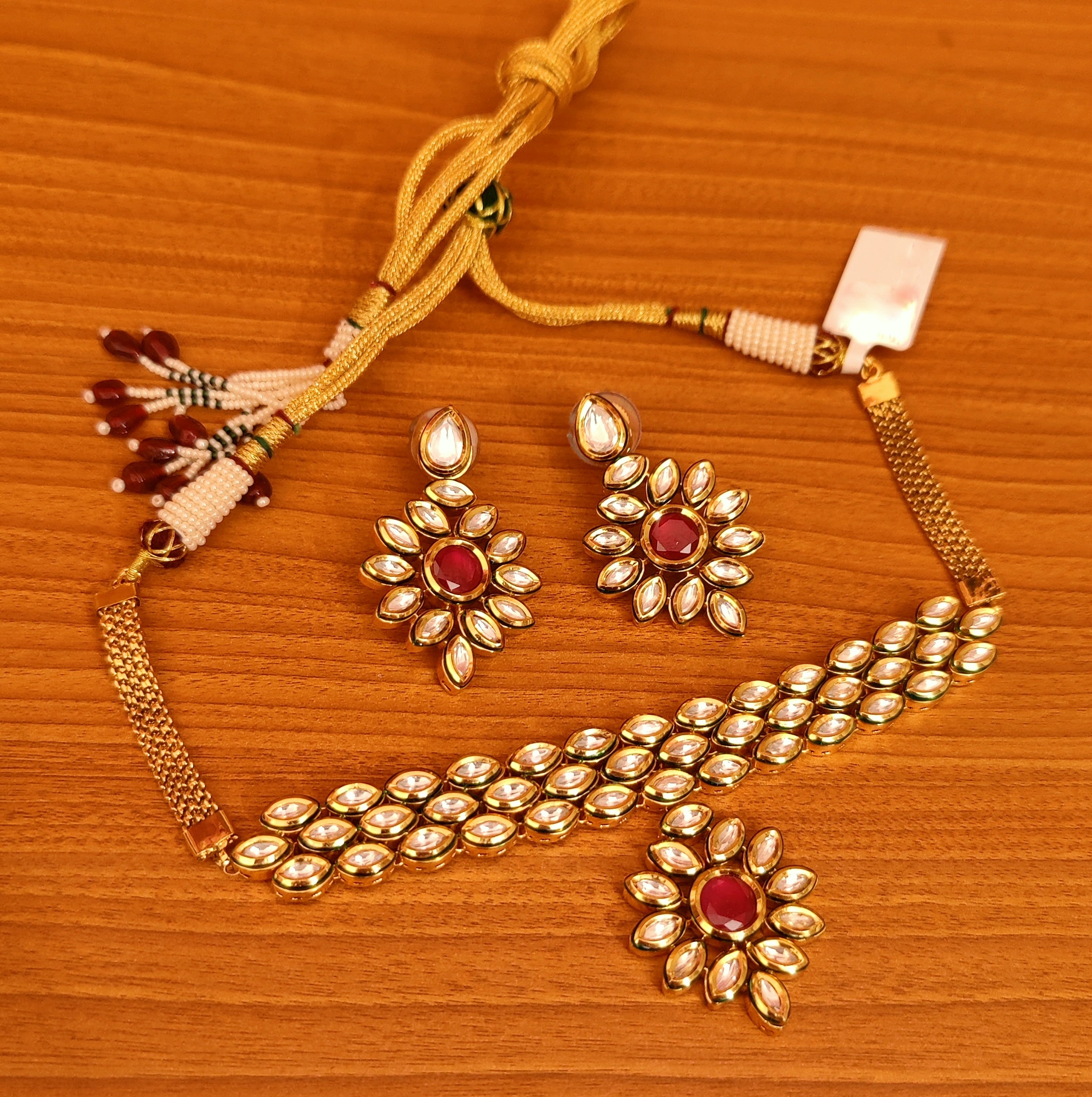 RUBY STUDDED MARQUESE KUNDAN POLKI CHOKER NECKLACE SET