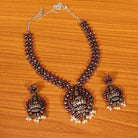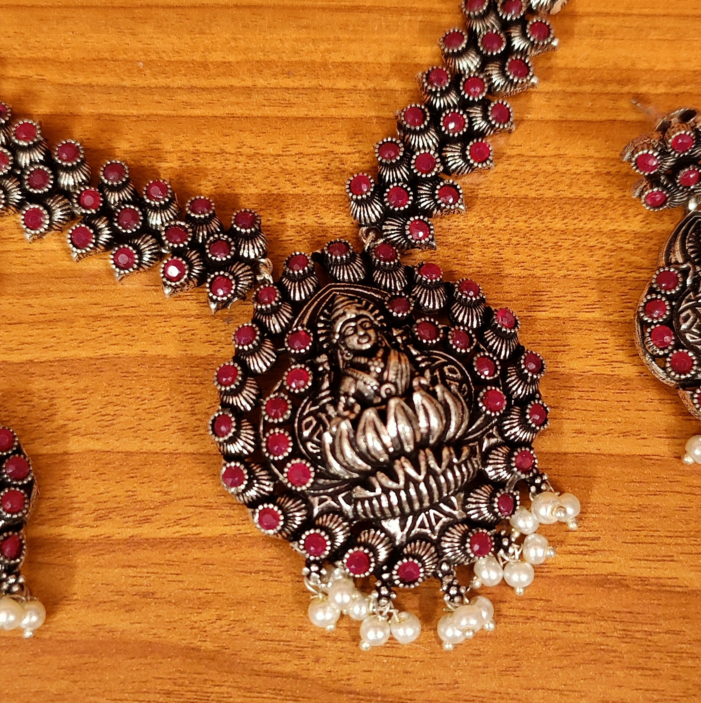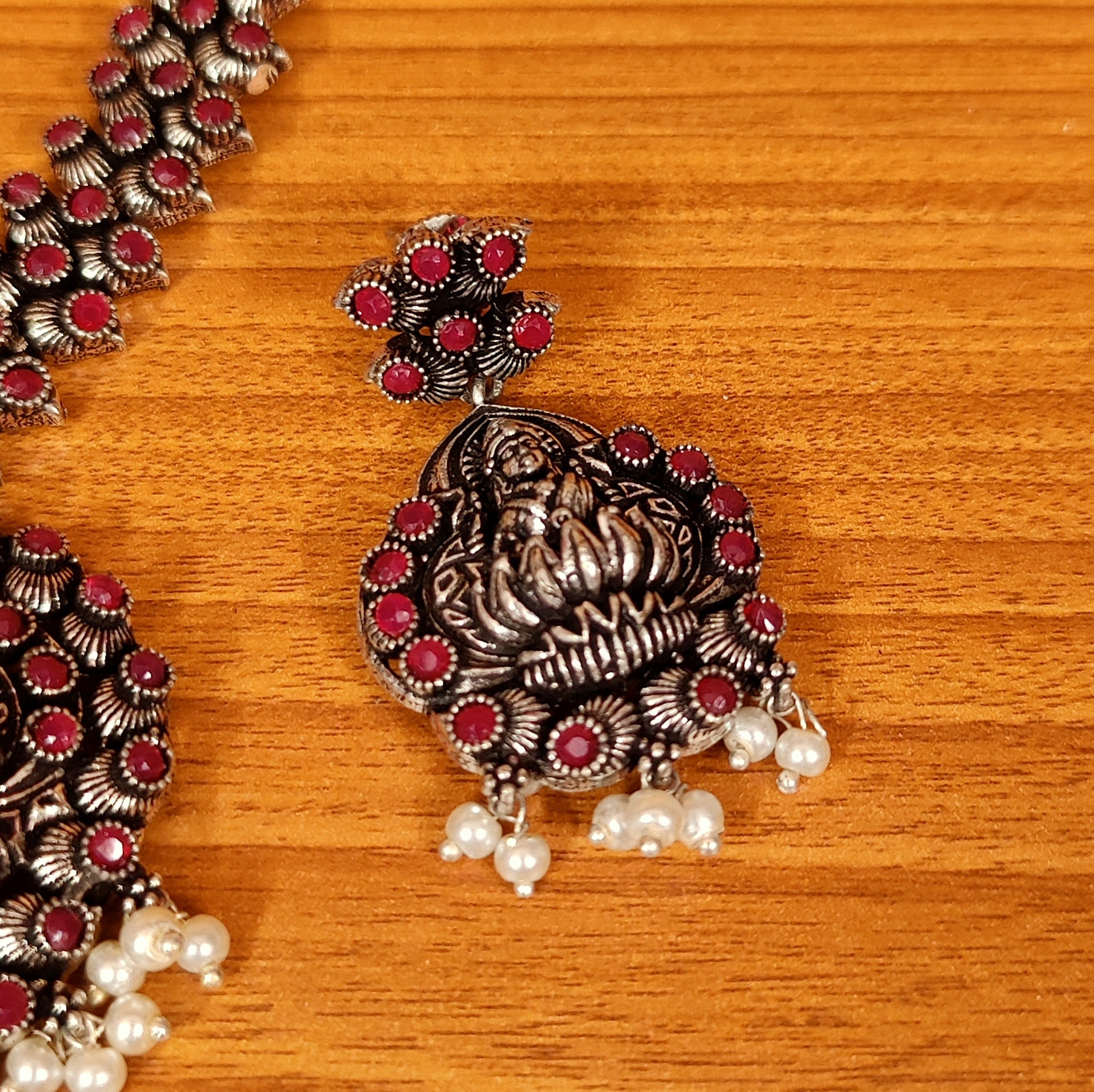 TEMPLE LOOK RUBY OXIDISED SILVER NECKLACE SET