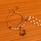 MULTICOLOUR POLKI & PEARL BRIDAL NOSE RING