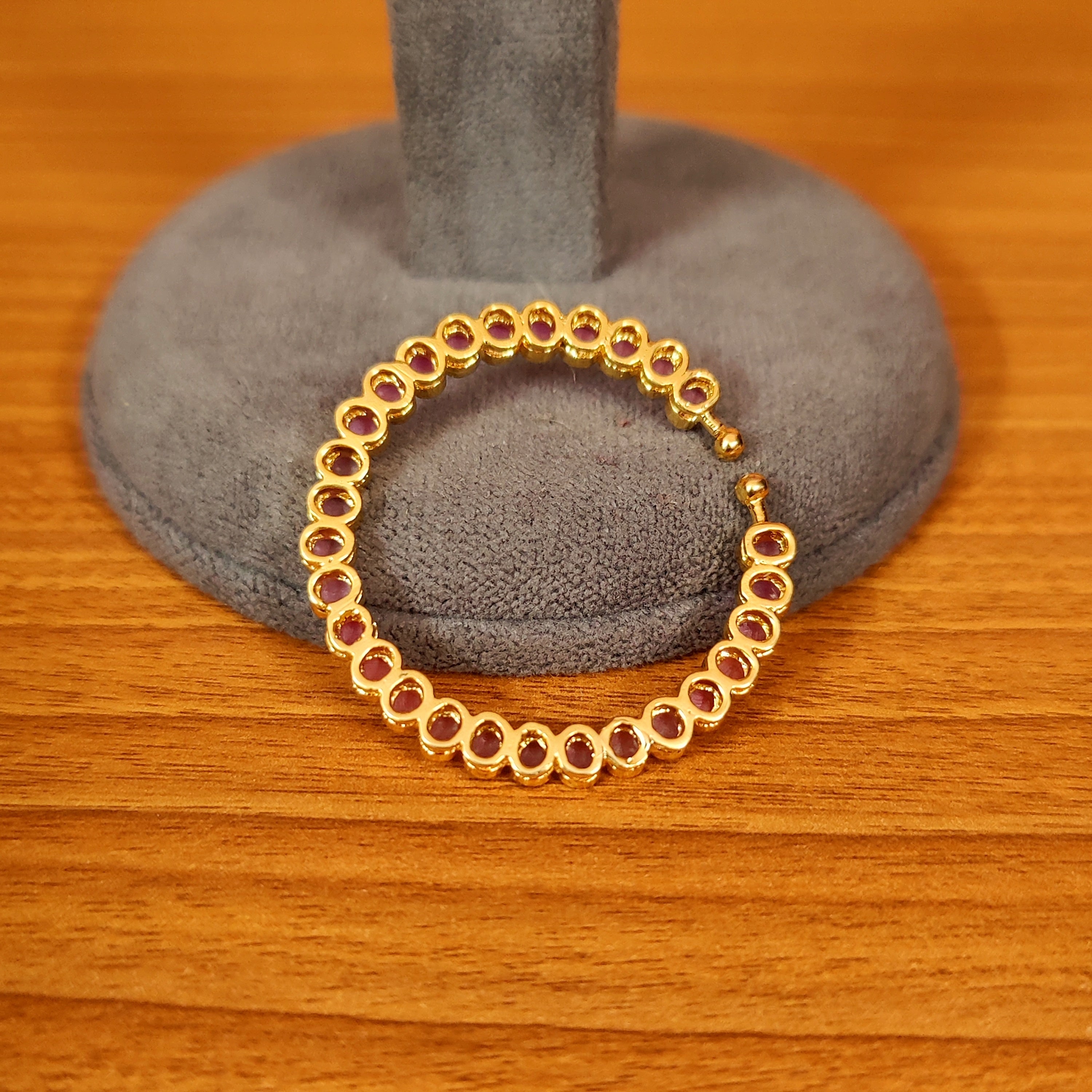 This flower pattern piercing nose ring is handcrafted in silver alloy with imitation ruby colour cz stones of very fine quality , the nose ring is very light in weight and plated with 18kt gold rhodium to give it a real gold look.