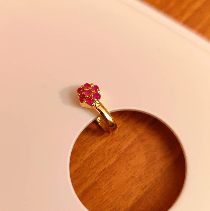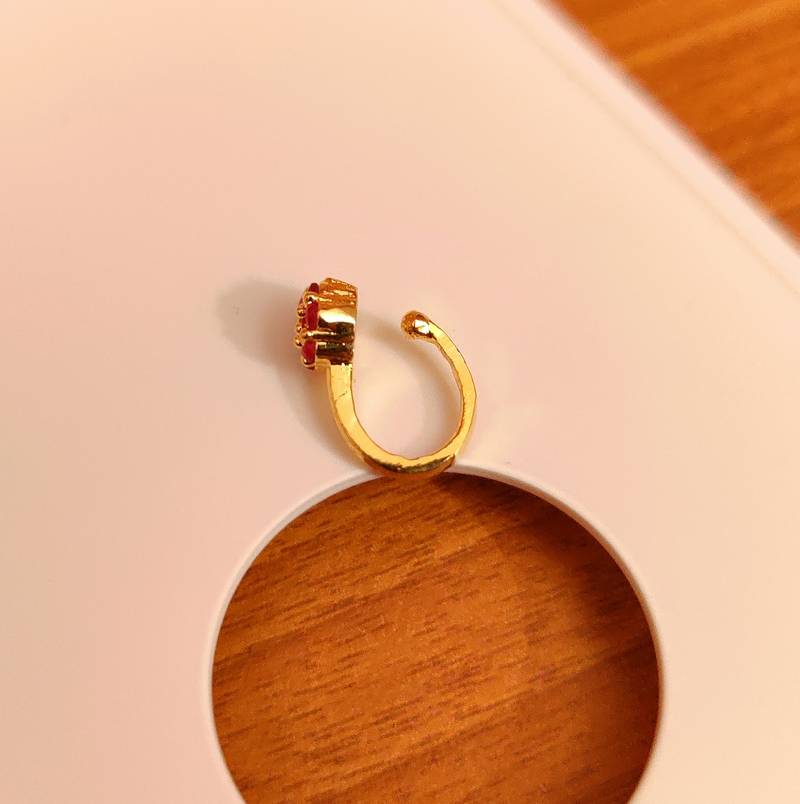 This Beautiful Nose Ring Is Handcrafted In Brass Alloy With Imitation Red Colour Stone Of Very Fine Quality . The Nose Ring Is Very Intricate And Very Light In Weight And Is Plated In 18kt Gold Plating As Done On The Real Gold Jewellery.