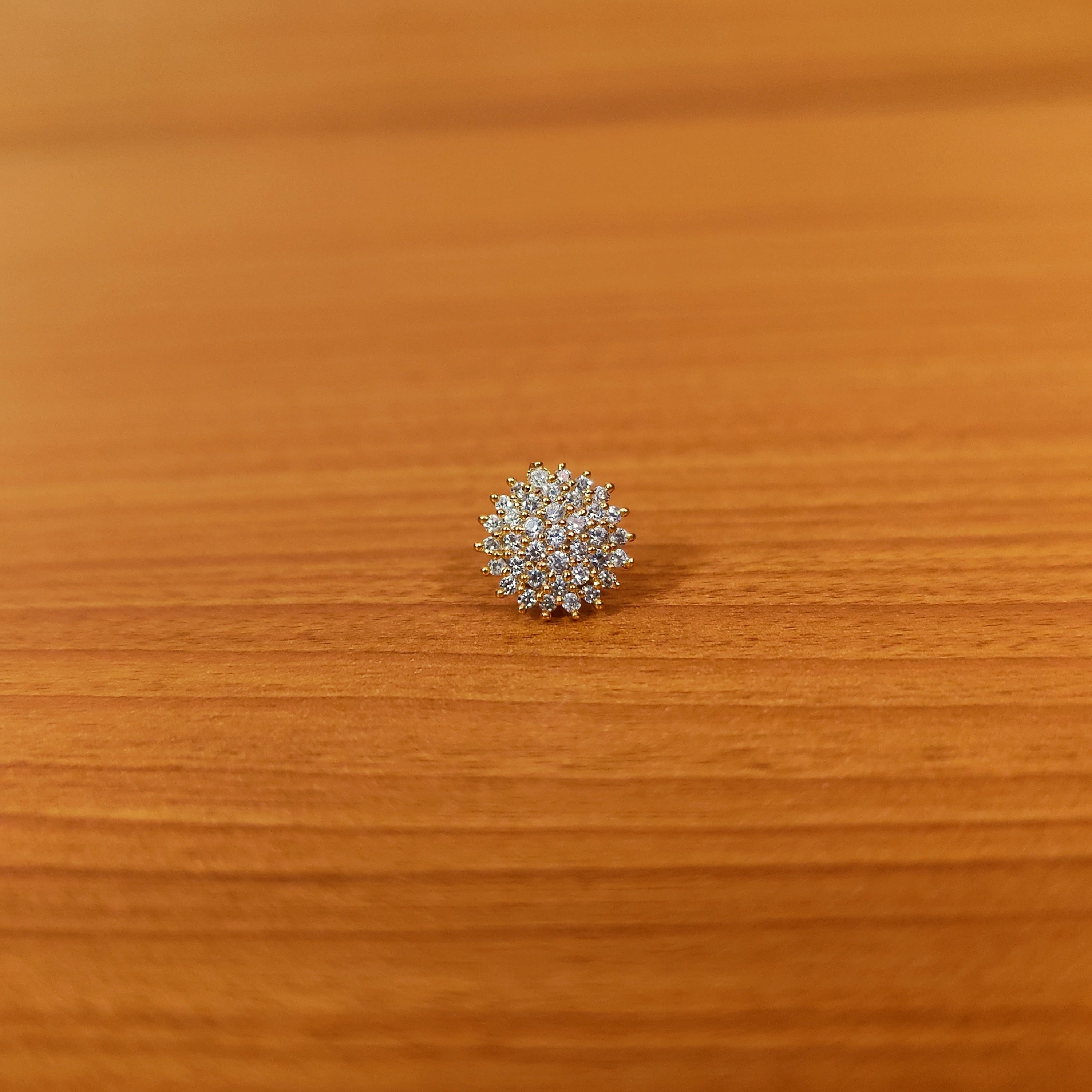 This flower pattern piercing nose ring is handcrafted in silver alloy with imitation ruby colour cz stones of very fine quality , the nose ring is very light in weight and plated with 18kt gold rhodium to give it a real gold look.
