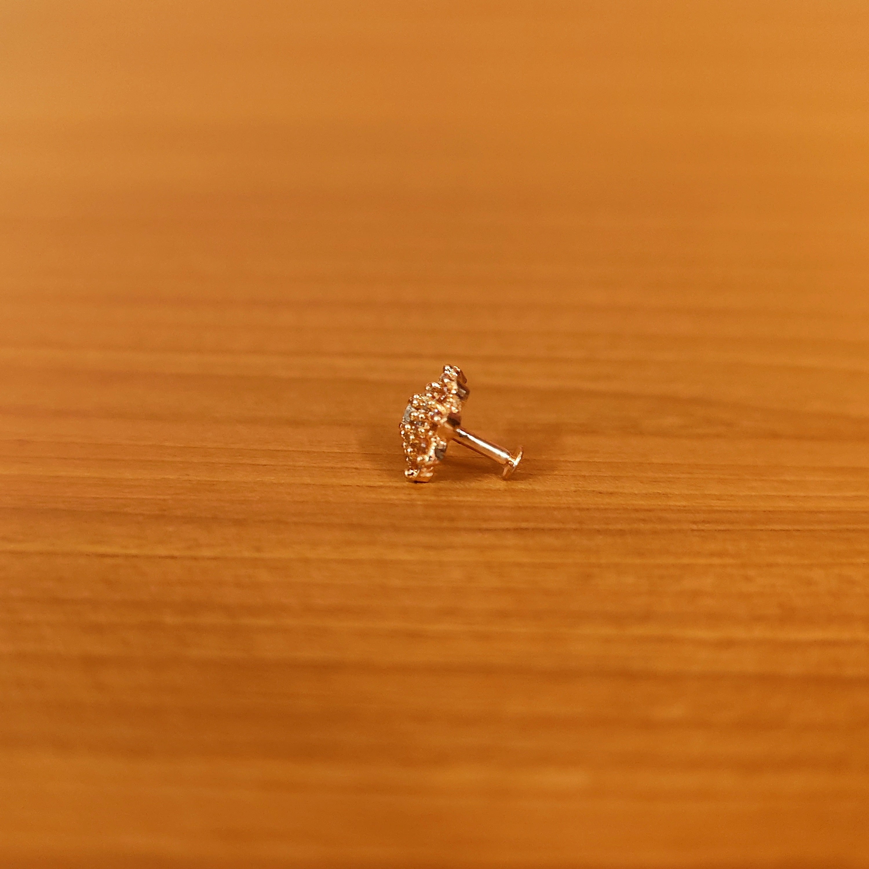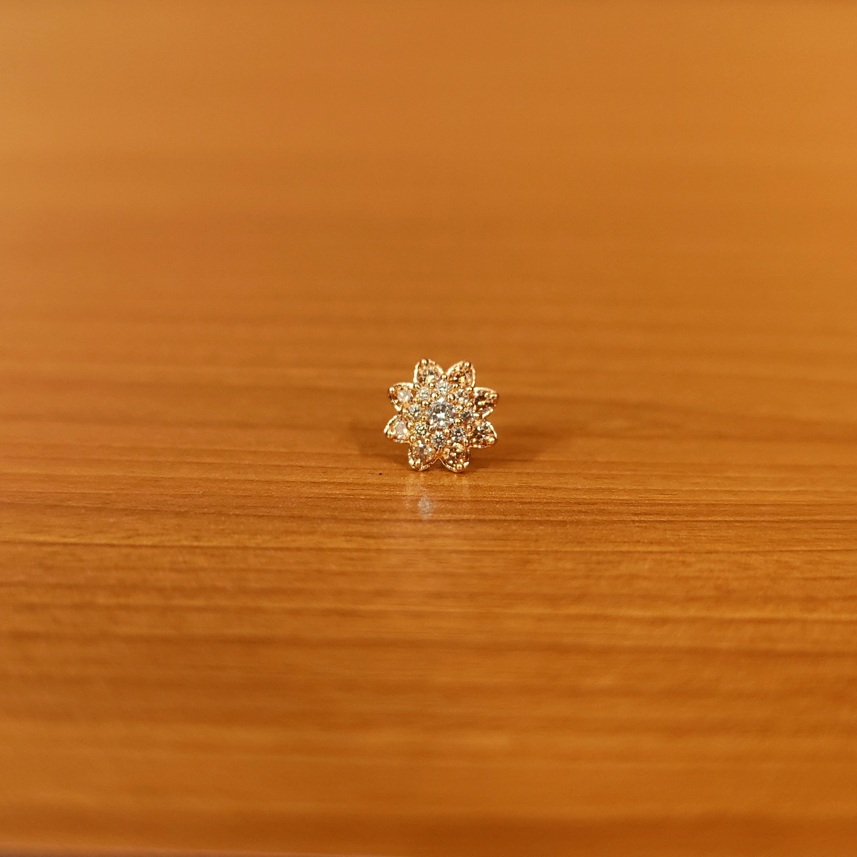 This flower pattern piercing nose ring is handcrafted in silver alloy with imitation ruby colour cz stones of very fine quality , the nose ring is very light in weight and plated with 18kt gold rhodium to give it a real gold look.