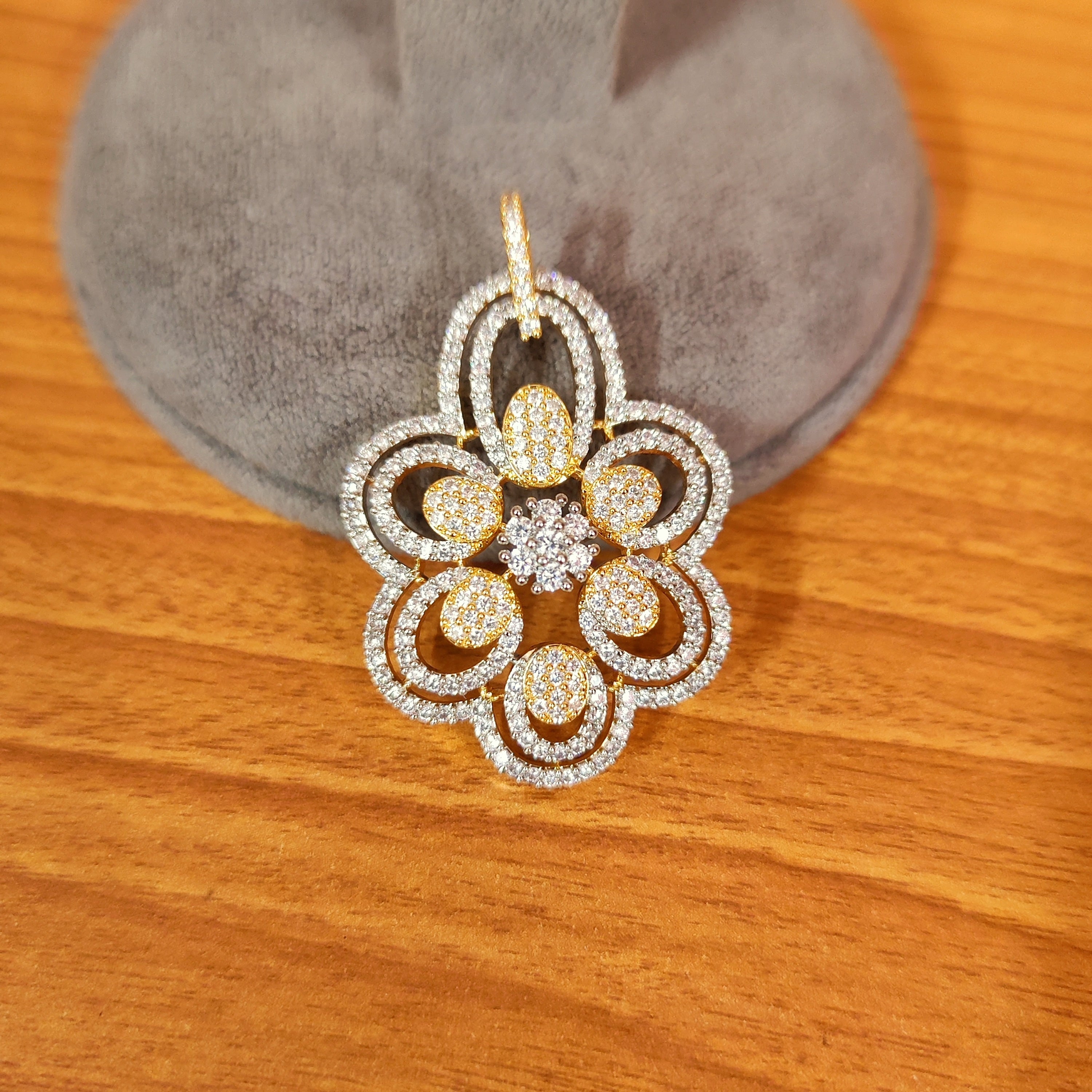 This real diamond look pendant set is made in silver alloy with the finest quality of american diamond of extremely fine quality. This gorgeous coin pendant set is handcrafted to perfection with superior quality cz stones. This pendant set is plated with 18kt nickle free gold rhodium that gives the design a real gold look & comes with a matching pair of perfect size earrings which are absolutely gorgeous and are very light in weight.