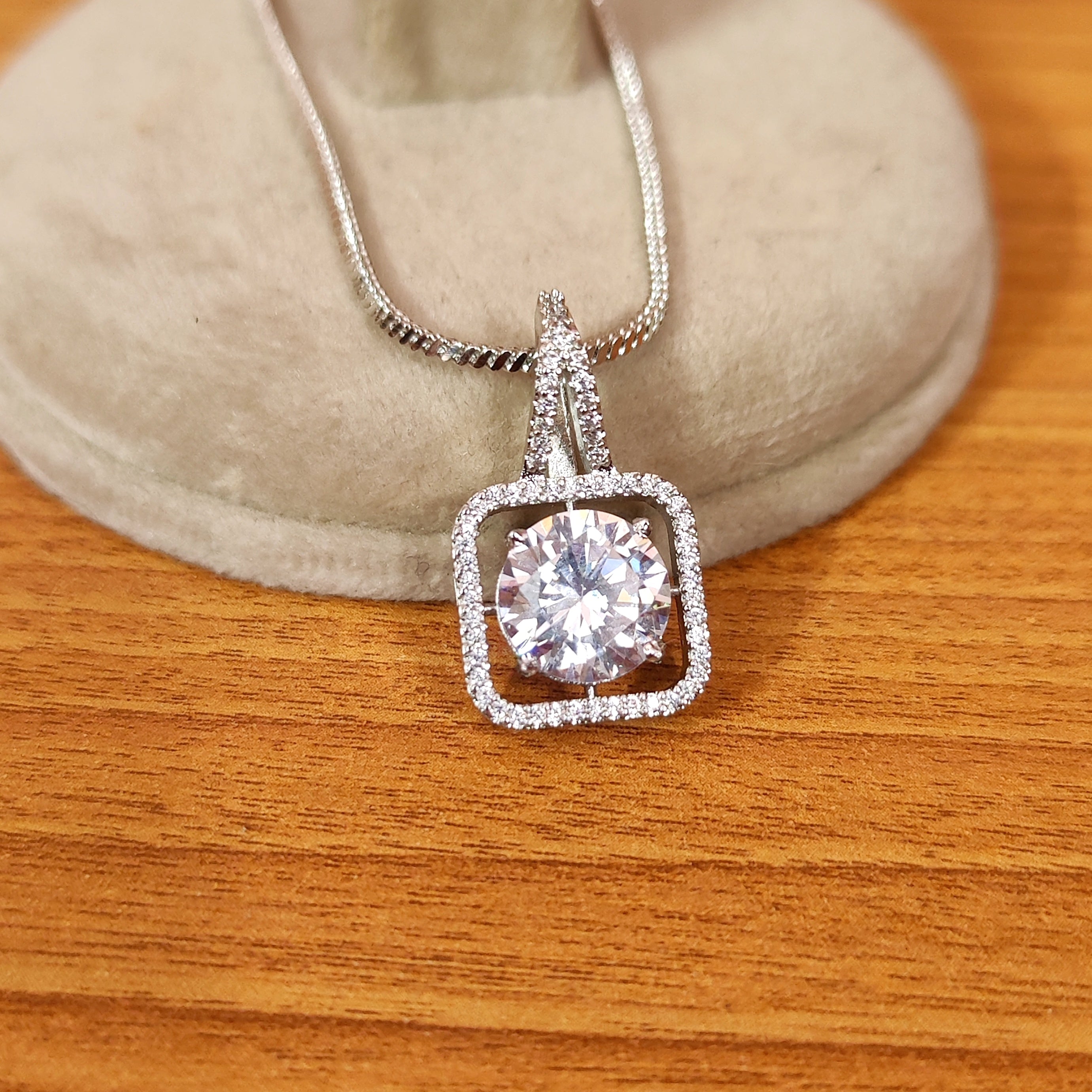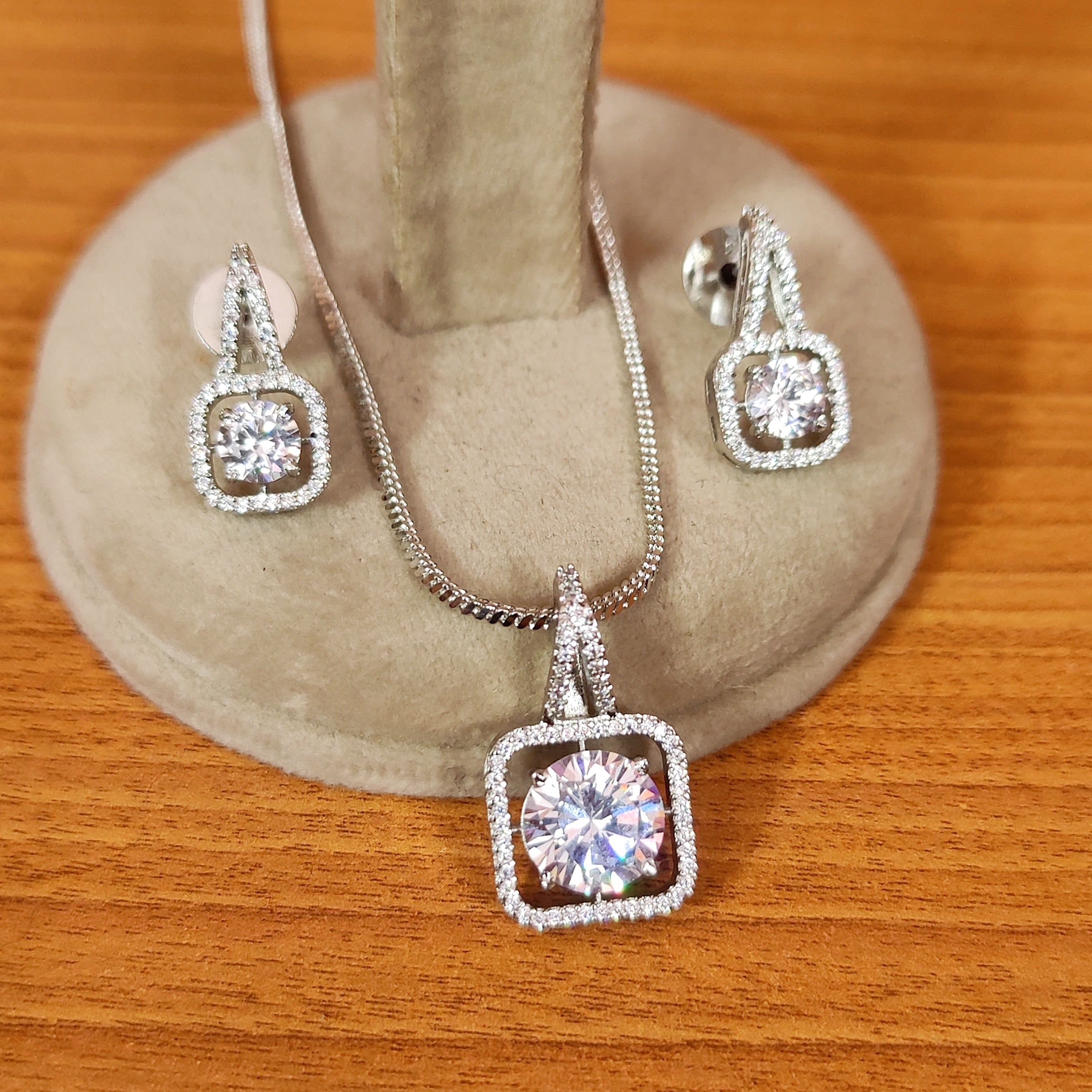 Silver Plated Cz Solitaire Diamond Look Pendant Set