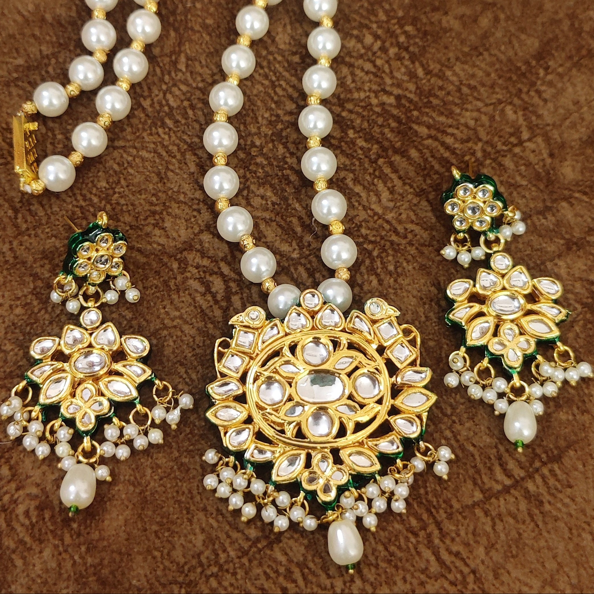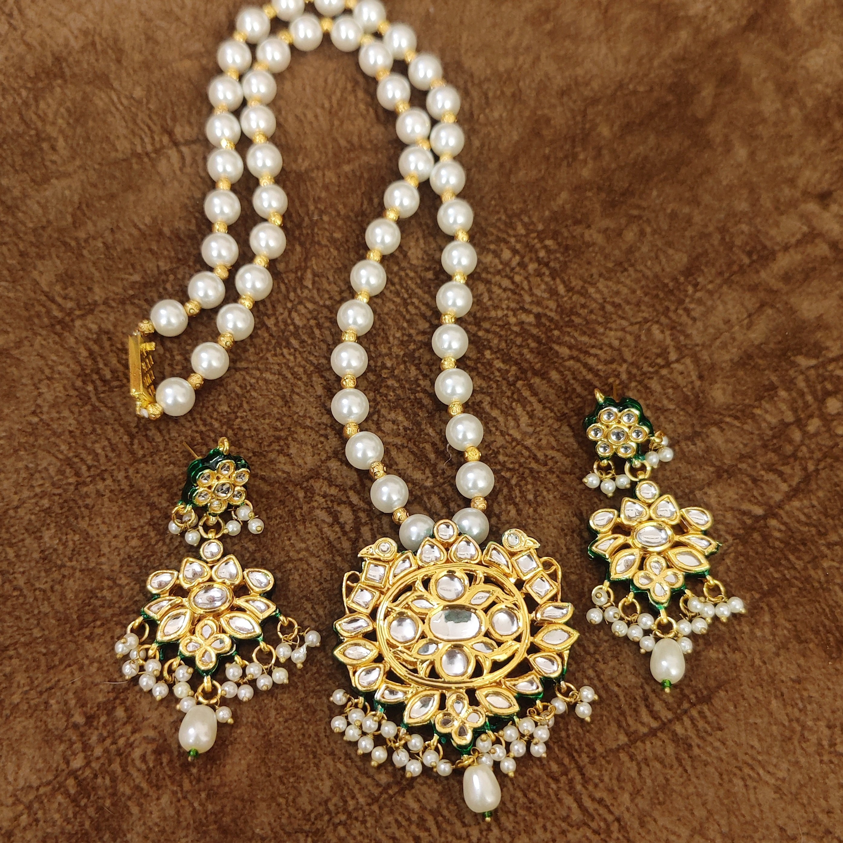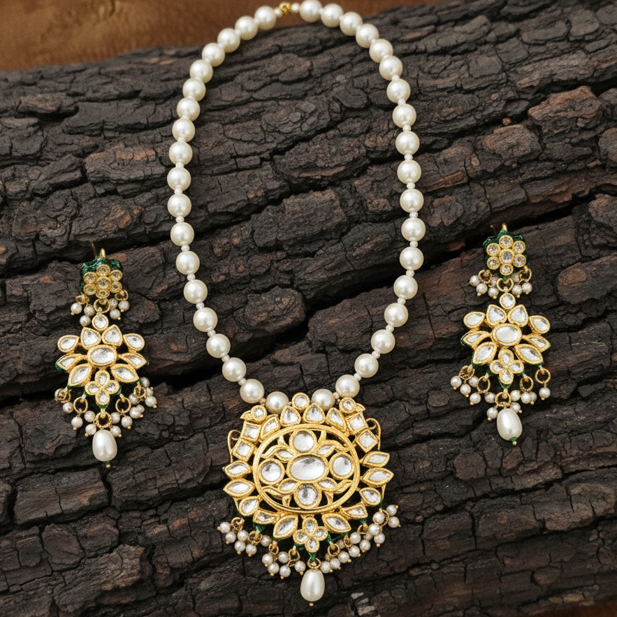 Royal Pearl Mala Kundan Pendant Set with Handcrafted Polki Design – Sanvi Jewels