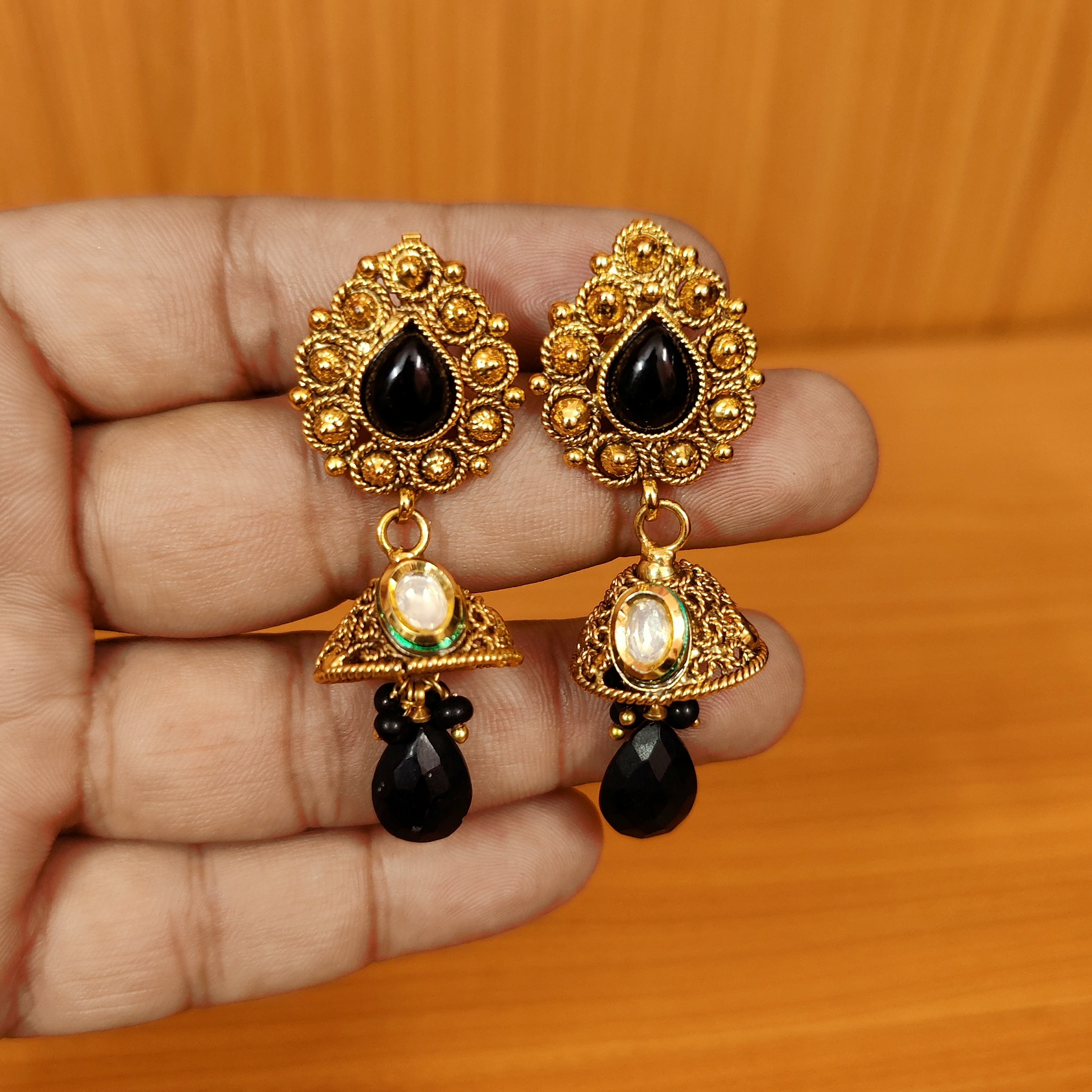 ANTIQUE GOLD PLATED BLACK STONES KUNDAN PENDANT SET