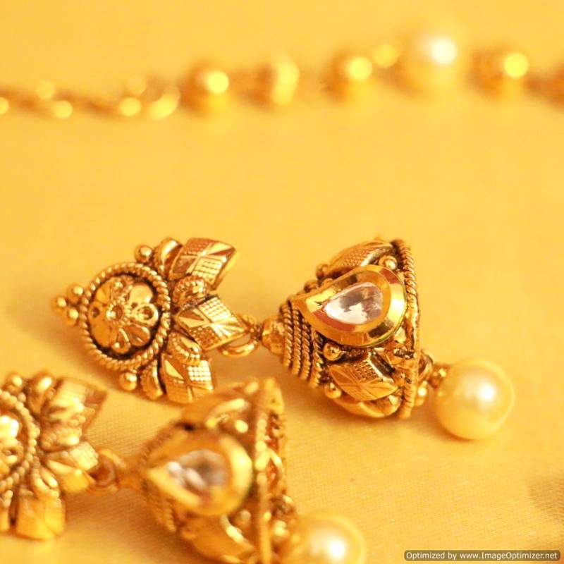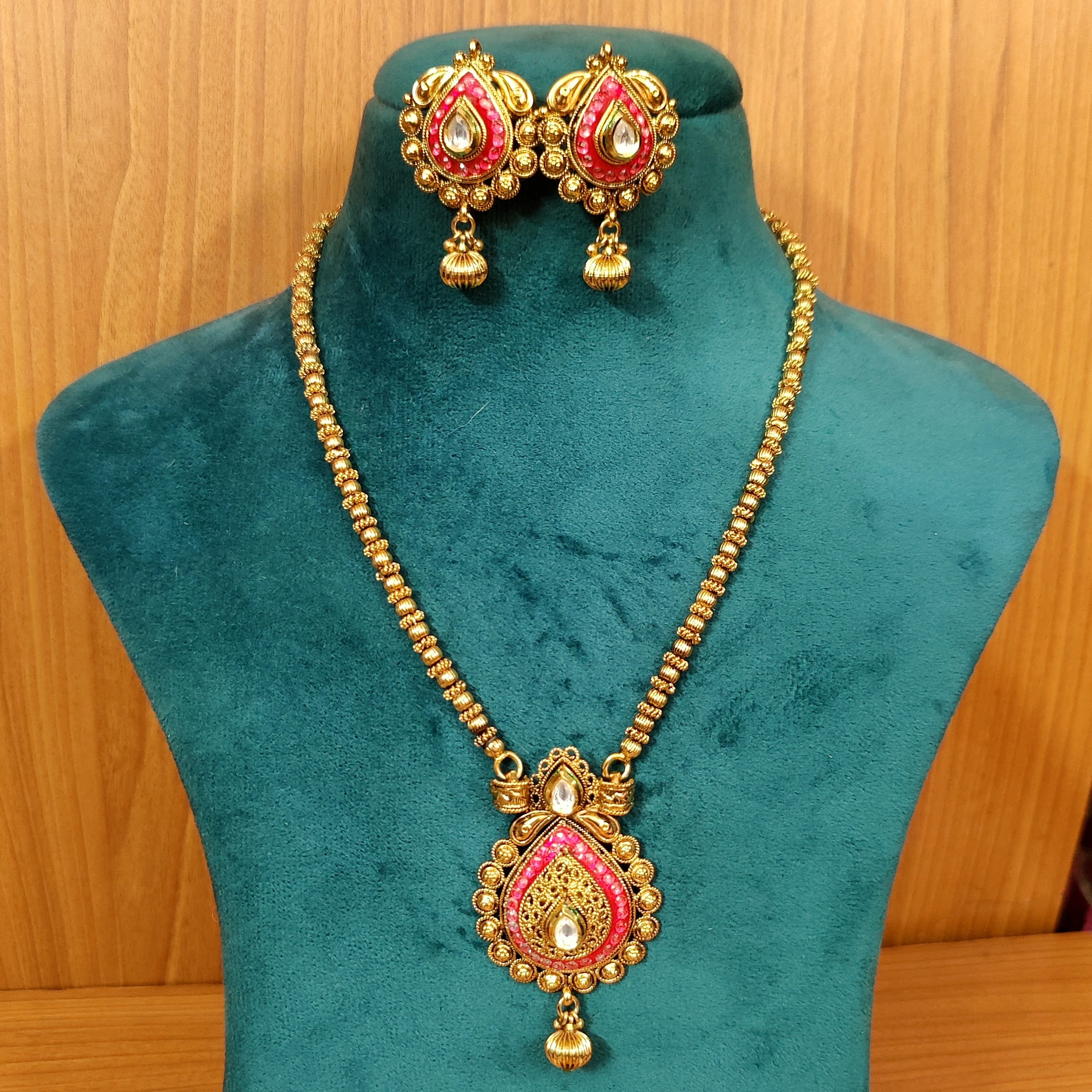 ANTIQUE GOLD PLATED KUNDAN LOOK PENDANT SET