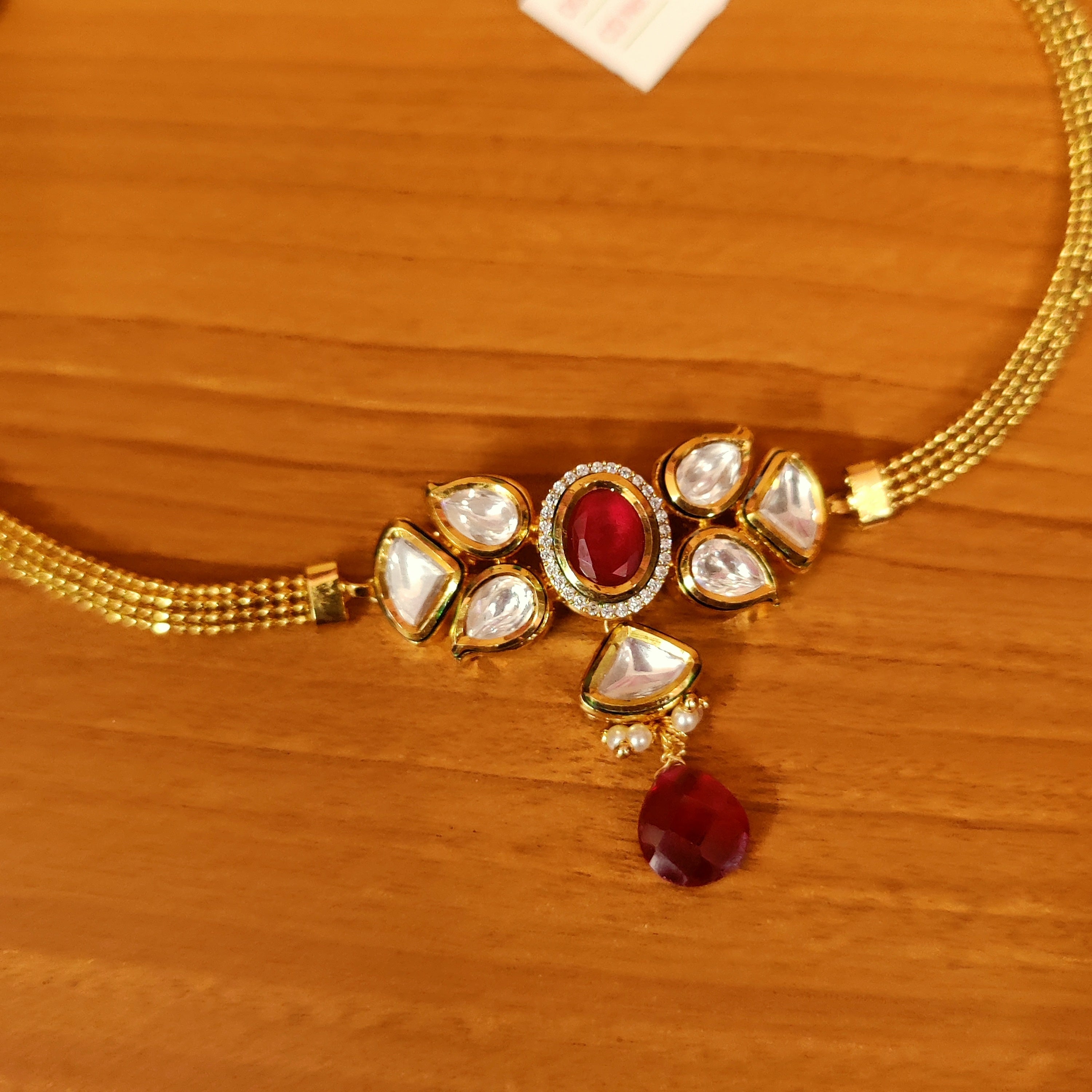 This beautiful pendant set is handcrafted in silver alloy with semi precious kundan & meenakari work with semi precious stones. This pendant set is coated with 18 kt gold polish which give them a unique look . An absolutely stunning piece to own and are very light in weight.