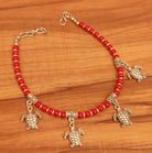 CORAL BEADS OXIDISED TORTOISE PATTERN ANKLETS