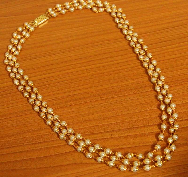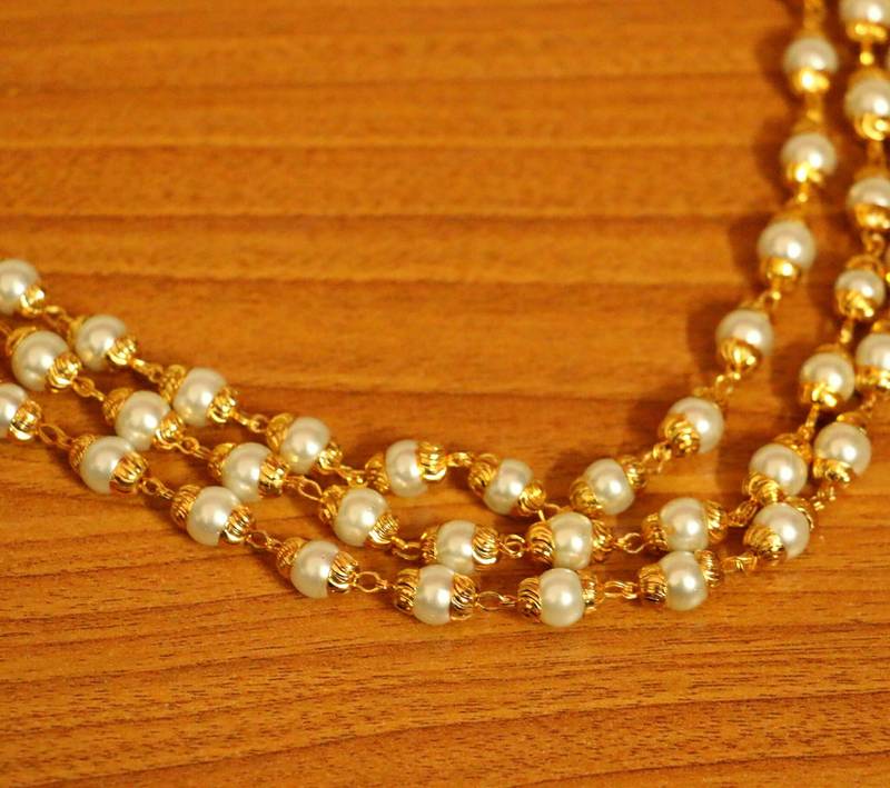 This beautiful necklace is handcrafted in copper alloy with imitation pearls & polki work of very fine quality . This necklace is coated with 18 kt gold polish which give them a unique look . An absolutely stunning piece to own and are very light in weight.