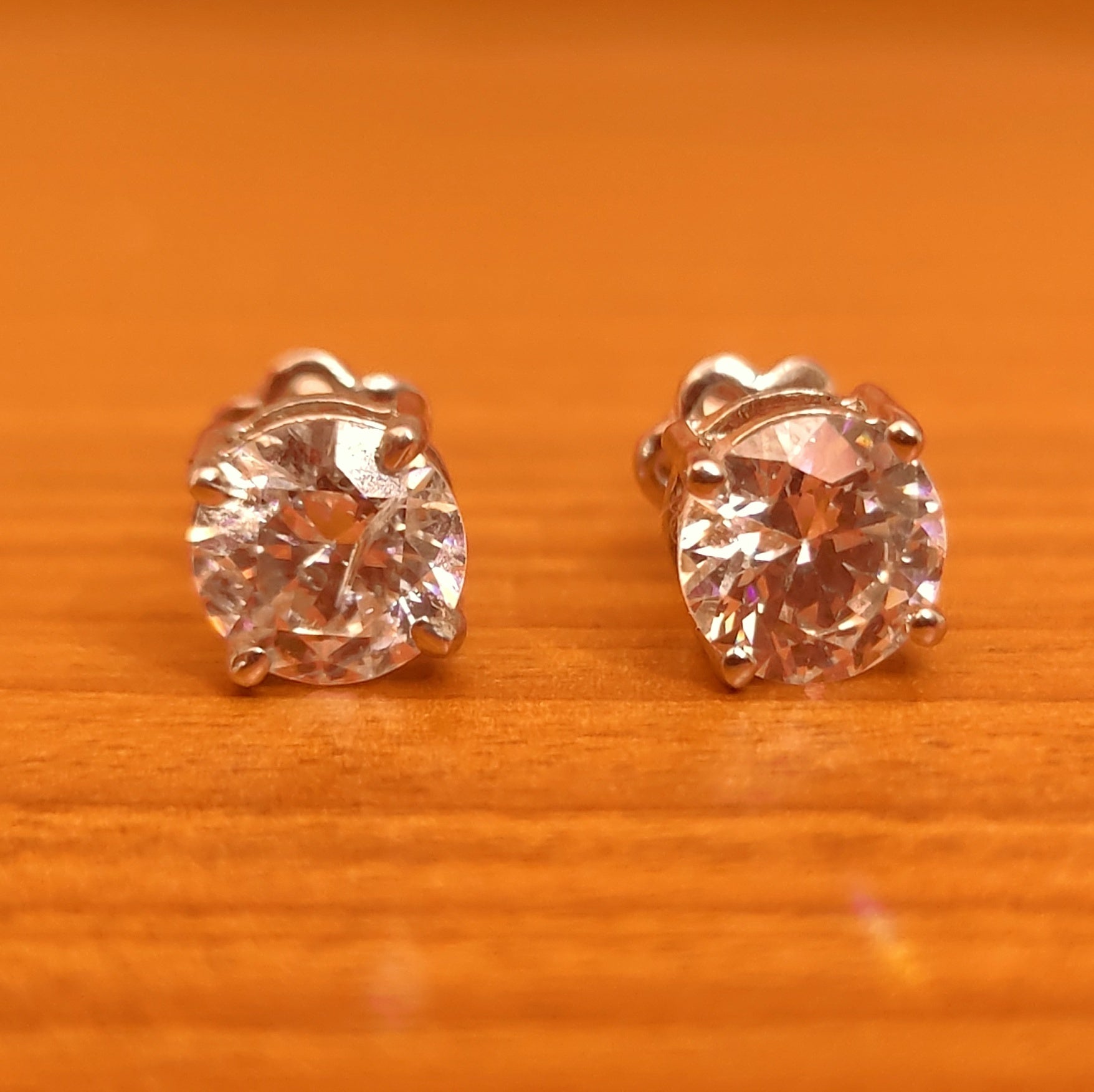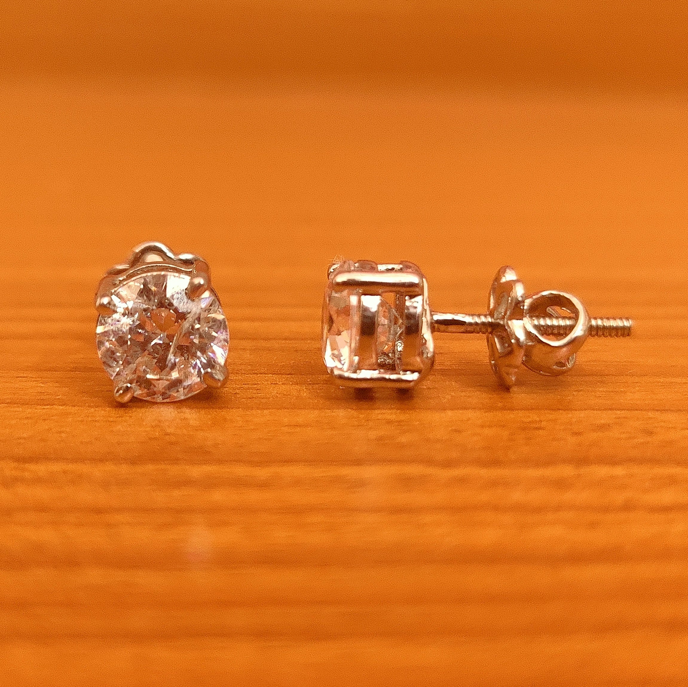 These beautiful sterling silver studs are handcrafted in 92.5 sterling silver with the finest quality signity cz stones of equal quality. These trendy & modern earrings are plated with high quality white gold rhodium. The earrings are very light in weight and comes with screw mechanism.