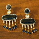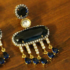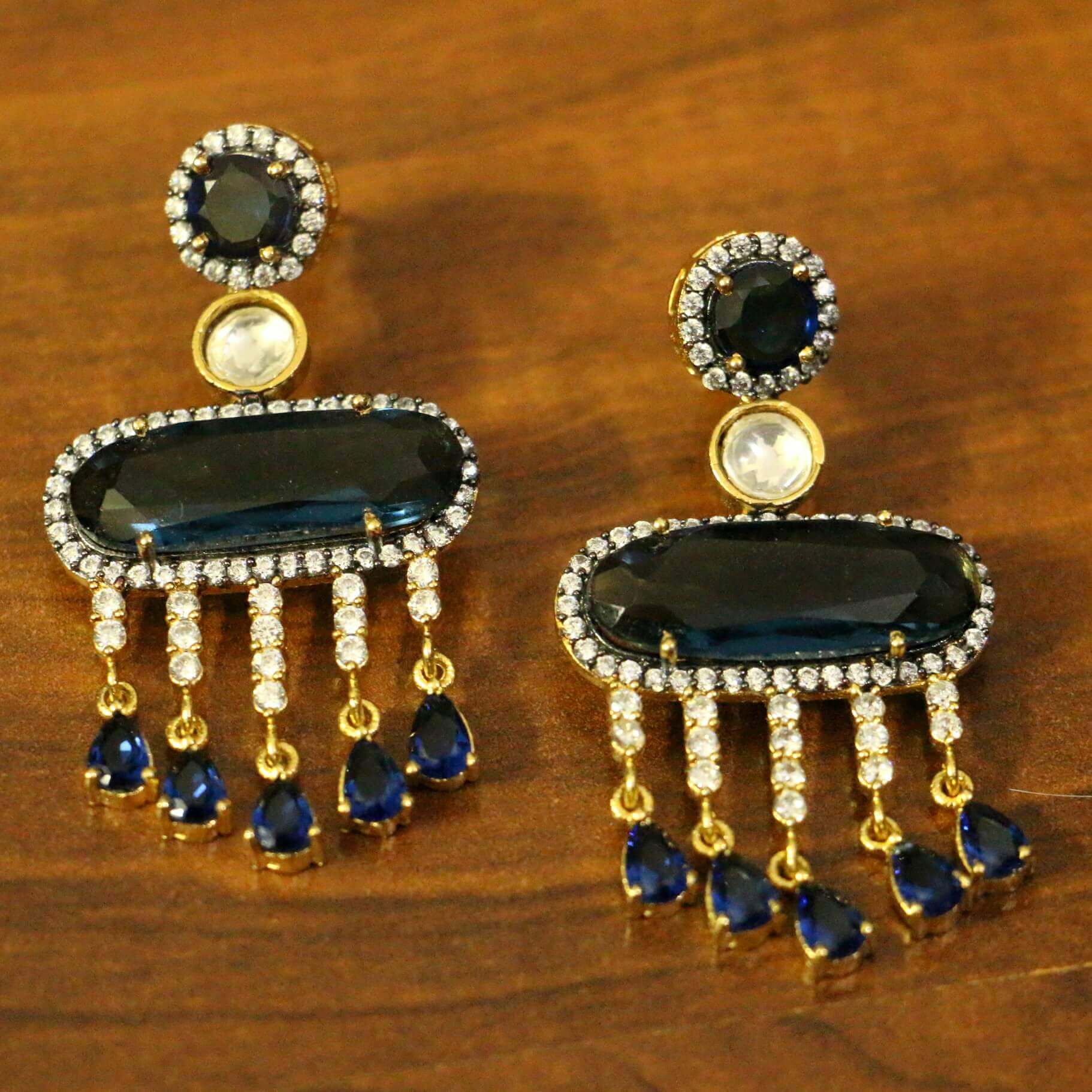 These diamond look danglers are handcrafted in silver alloy with imitation blue sapphire colour quartz & cz stones of very fine quality. These earrings are plated in 18kt gold rhodium plating which gives the design a real jewelry look .