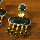Blue American Diamonds Sapphire Yellow Gold Danglers Drops