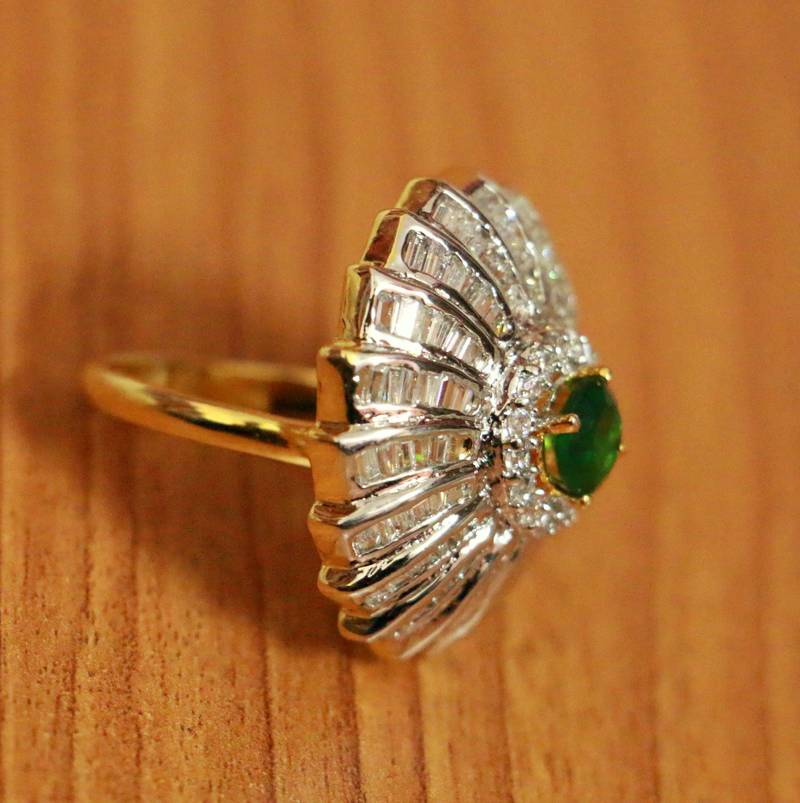 CZ STUDDED EMERALD COLOUR STONE COCKTAIL RING