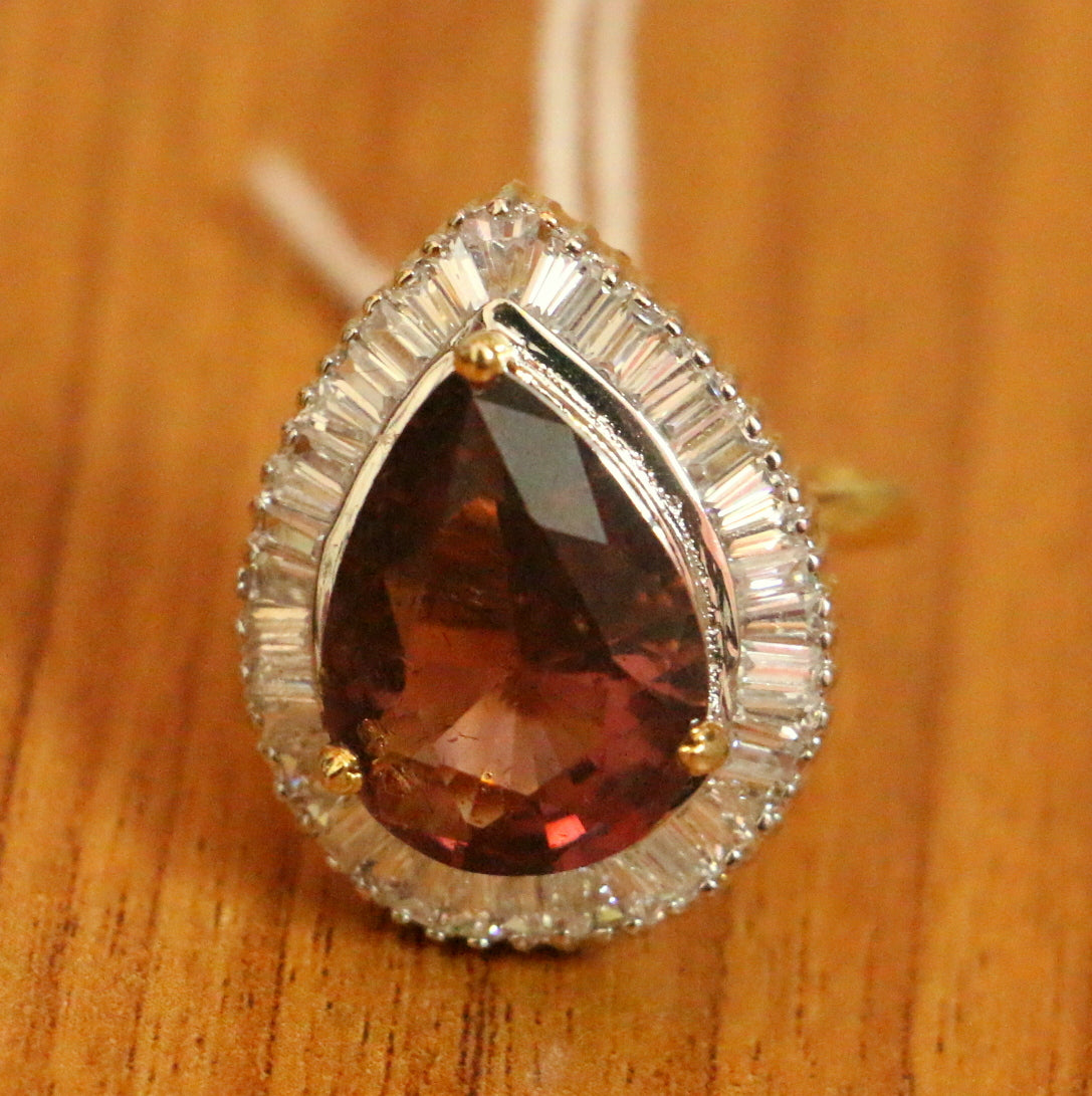 CZ STUDDED RHODOLITE STONE ADJUSTABLE RING