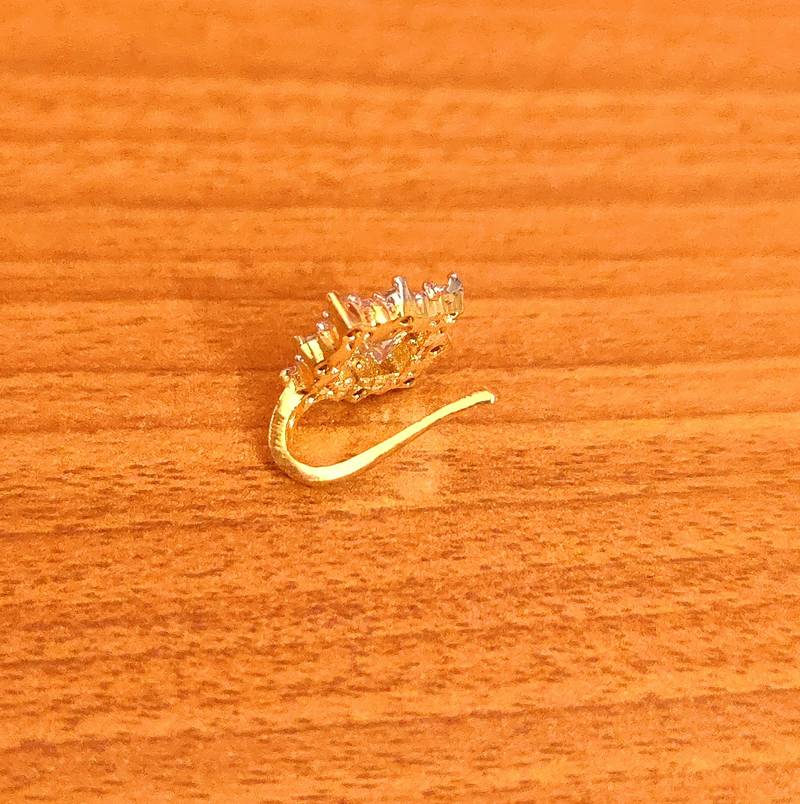 This Beautiful Nose Ring Is Handcrafted In Brass Alloy With Imitation Cz Stone Of Very Fine Quality . The Nose Ring Is Very Intricate And Very Light In Weight And Is Plated In 18kt Gold Plating As Done On The Real Gold Jewellery.