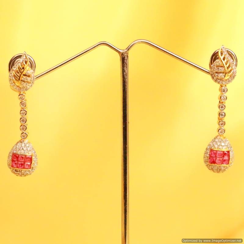Diamond Look Leaf Pattern Ruby Danglers