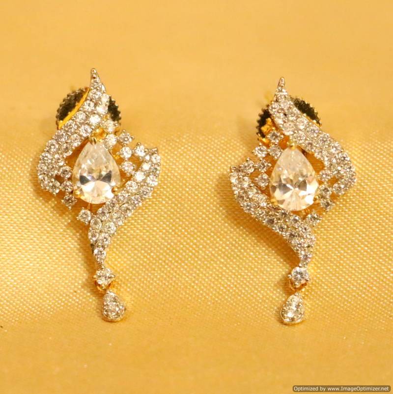 These beautiful earrings are handcrafted in brass alloy with imitation semi precious american diamonds work of very fine quality. These earrings are coated with 18 kt gold polish which give them a unique look . An absolutely stunning piece to own and are very light in weight.