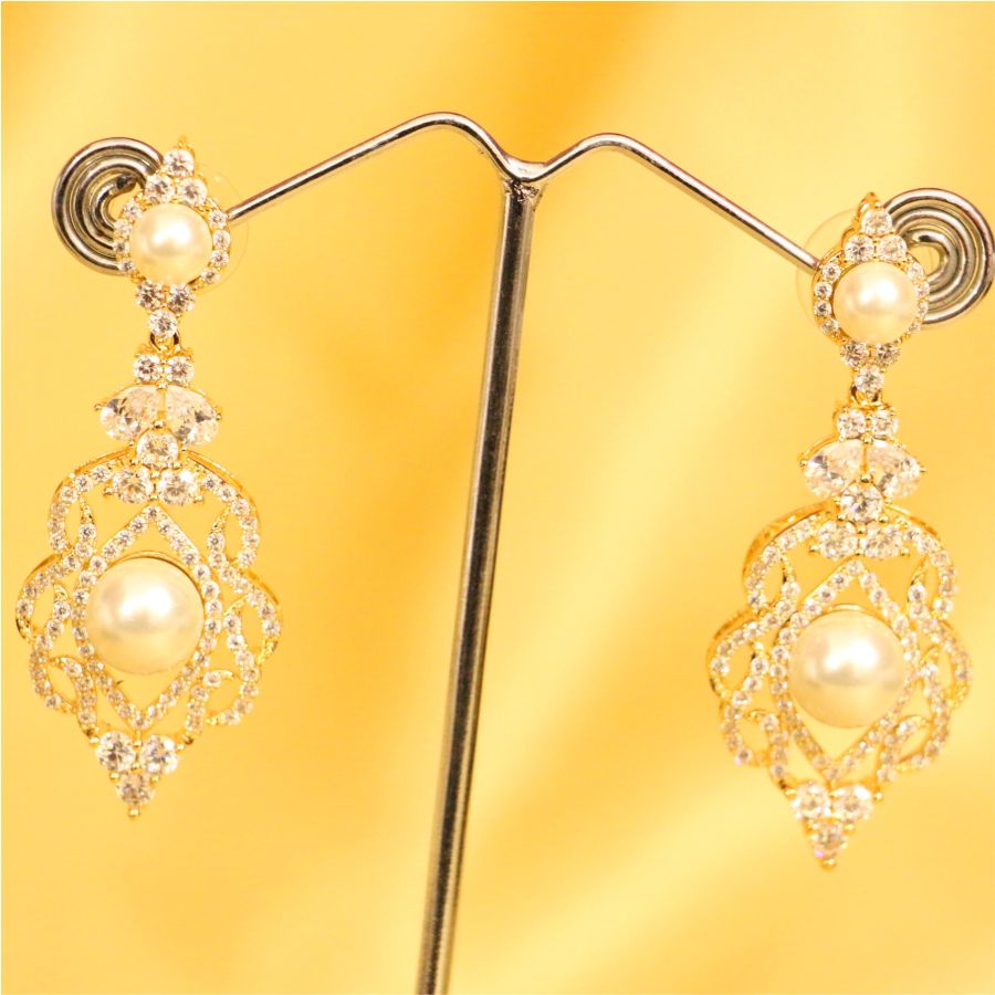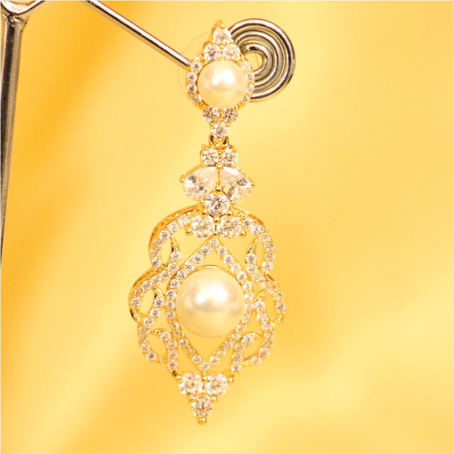 This beautiful Earring is handcrafted silver alloy of very fine quality with austrian merican diamond,pearl and semi precious stone of very fine quality. These earrings are coated with 18 kt gold polish which give them a unique look . An absolutely stunning piece to own and are very light in weight.