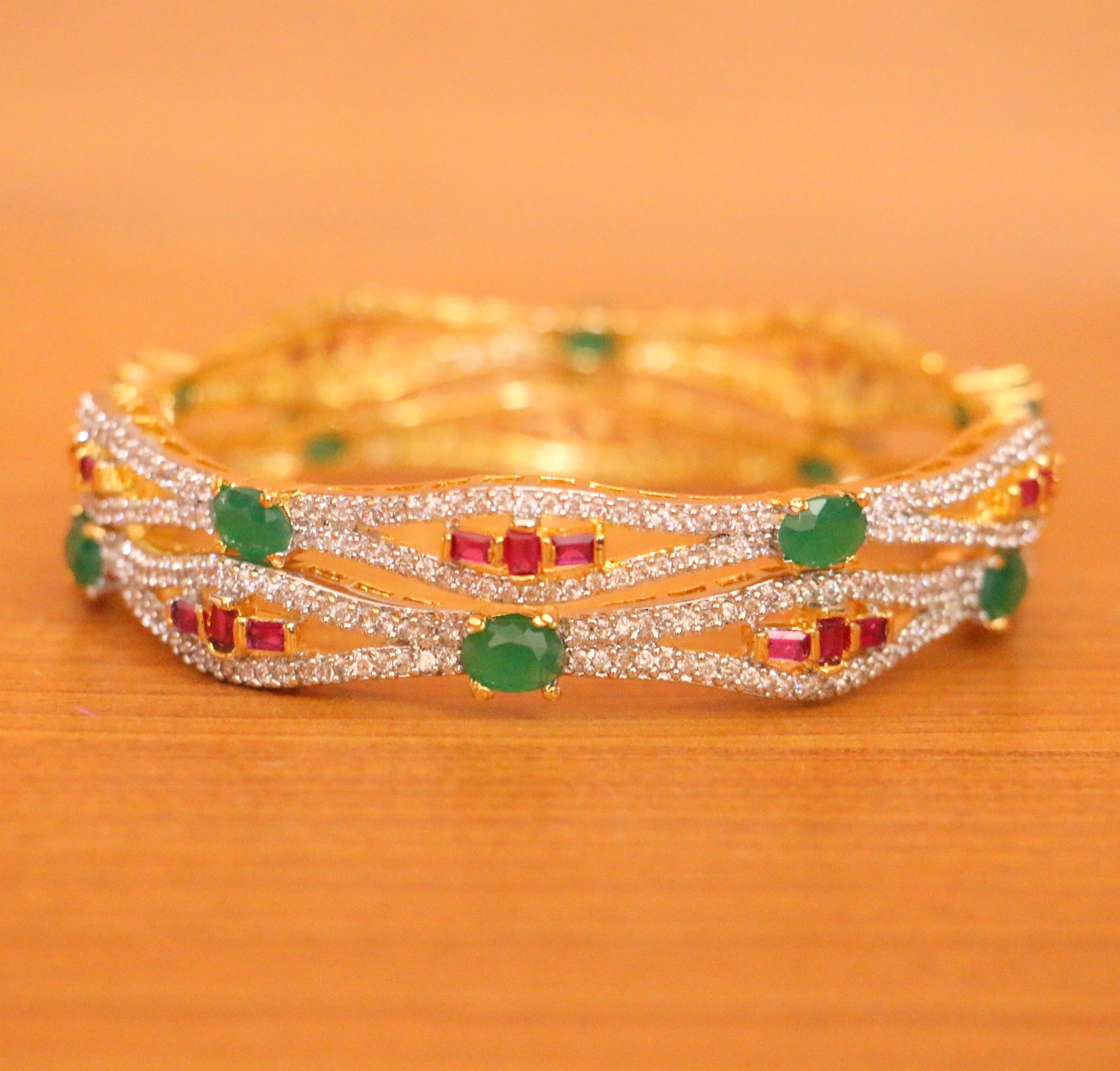 DIAMOND LOOK RUBY & EMERALD BANGLES